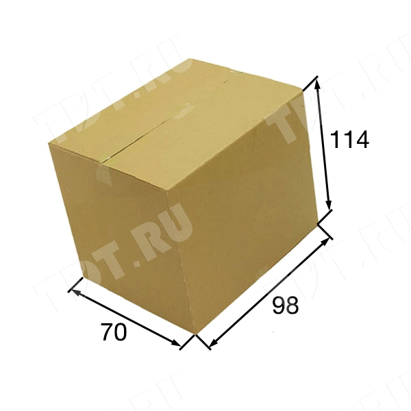 Короб К-98 бурого цвета, длиной 98 мм, шириной 70 мм и высотой 114 мм. Изготовлен из трехслойного картона марки Т-23 В. Полезный объём — 0.78 л.