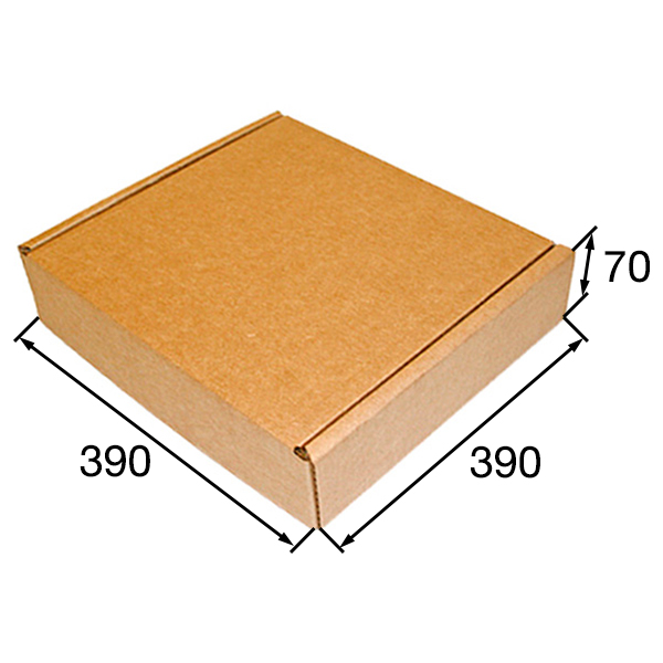 Короб КУ-18 бурый, длиной 390 мм, шириной 390 мм и высотой 70 мм. Изготовлен из трёхслойного картона Т-23 В. Полезный объём — 10.65 л.