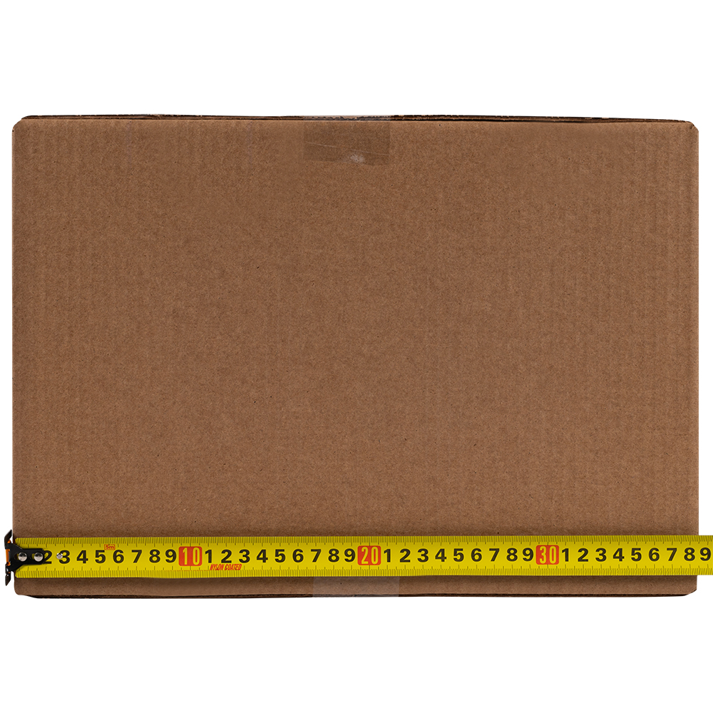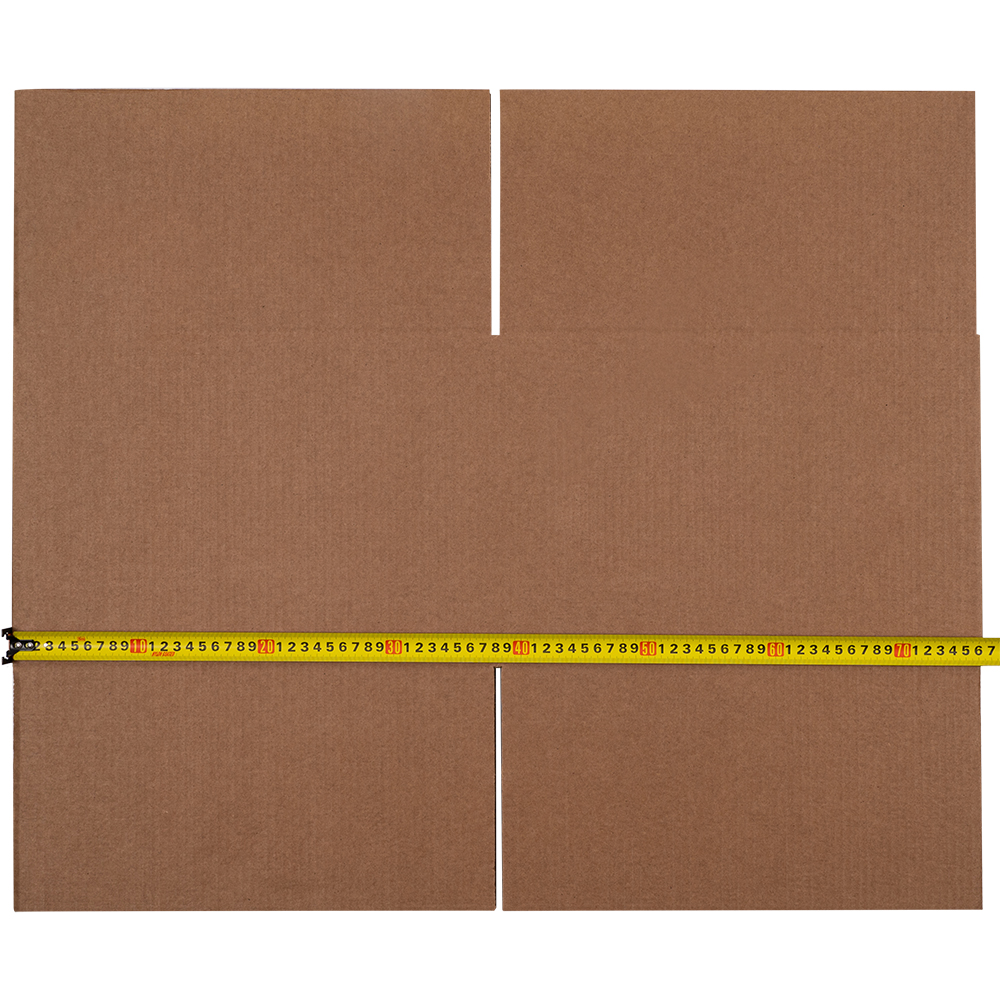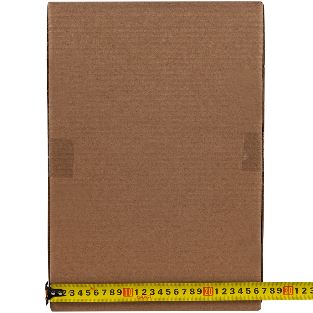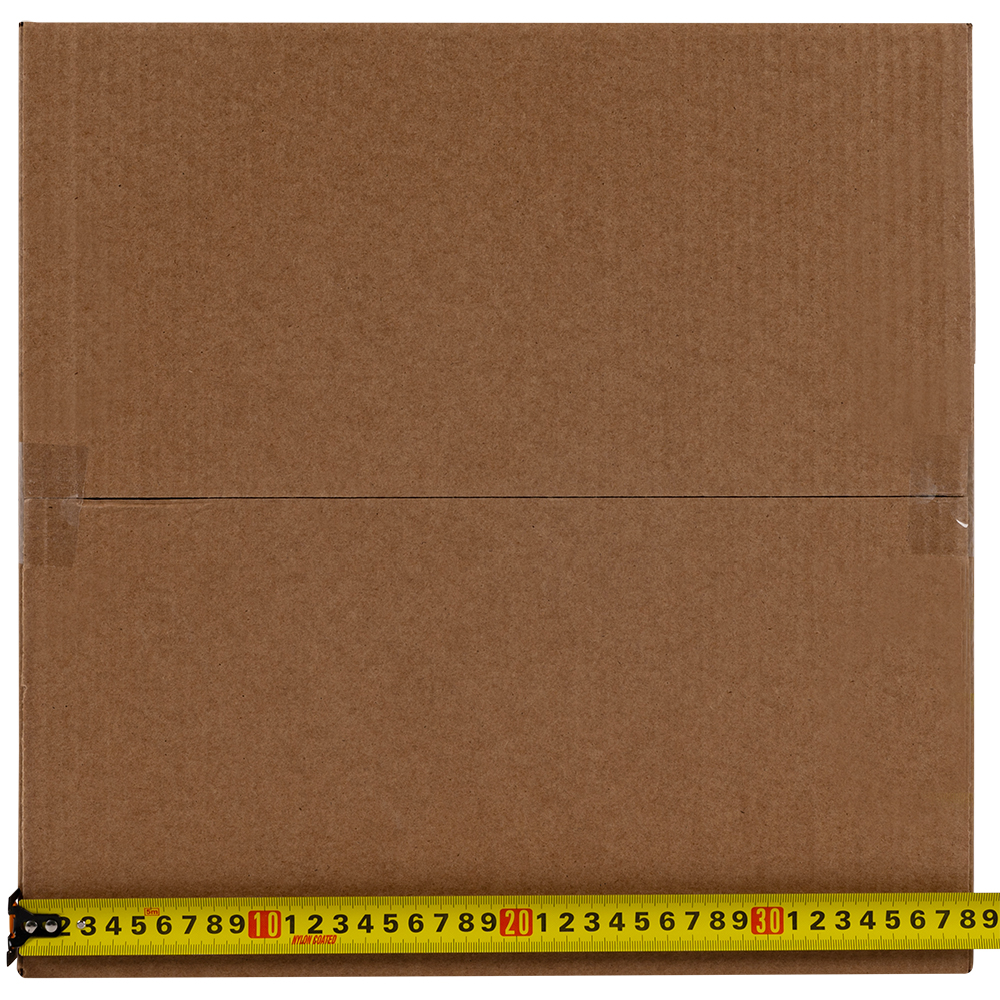 Картонный короб для переезда №1 (малый) длиной 380 мм, шириной 380 мм и высотой 260 мм. Изготовлен из трехслойного картона марки Т-23 В. Полезный объём — 37.54 л.