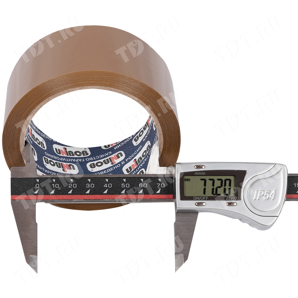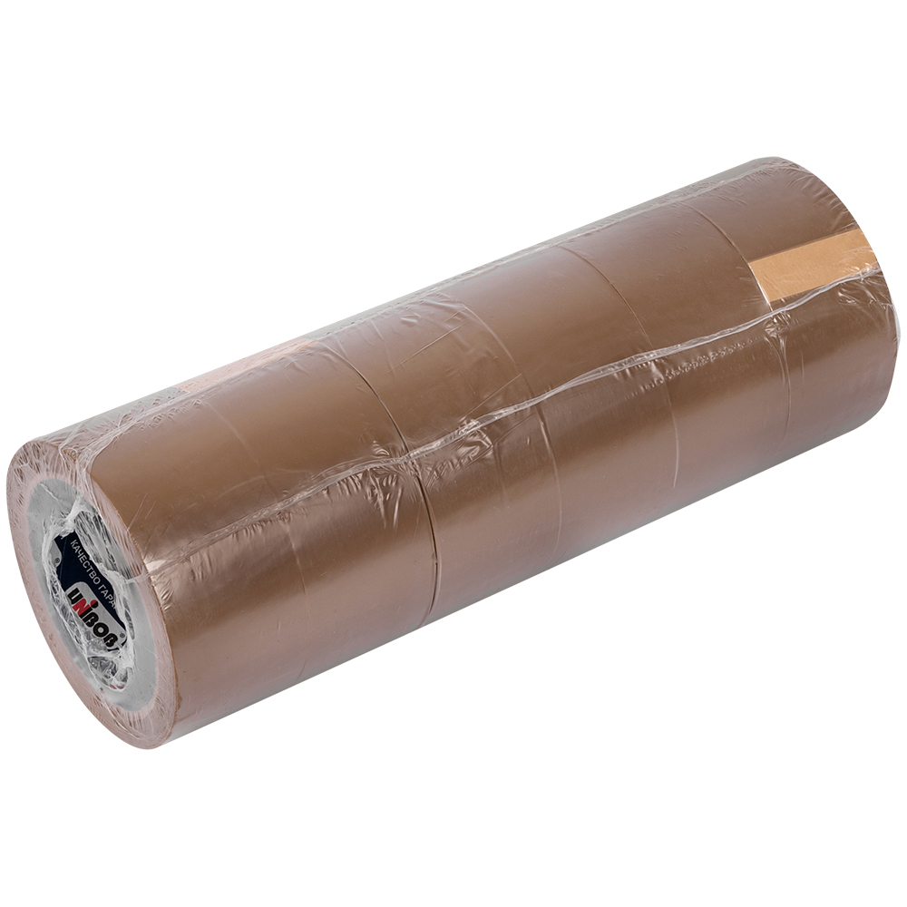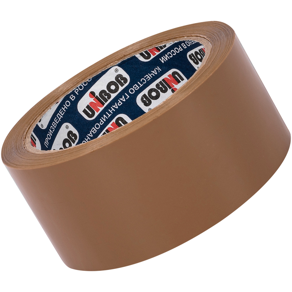 Коричневая клейкая лента (скотч) марки Unibob® шириной 48 мм, диаметром втулки 76 мм, намоткой 66 метров для ручной упаковки.