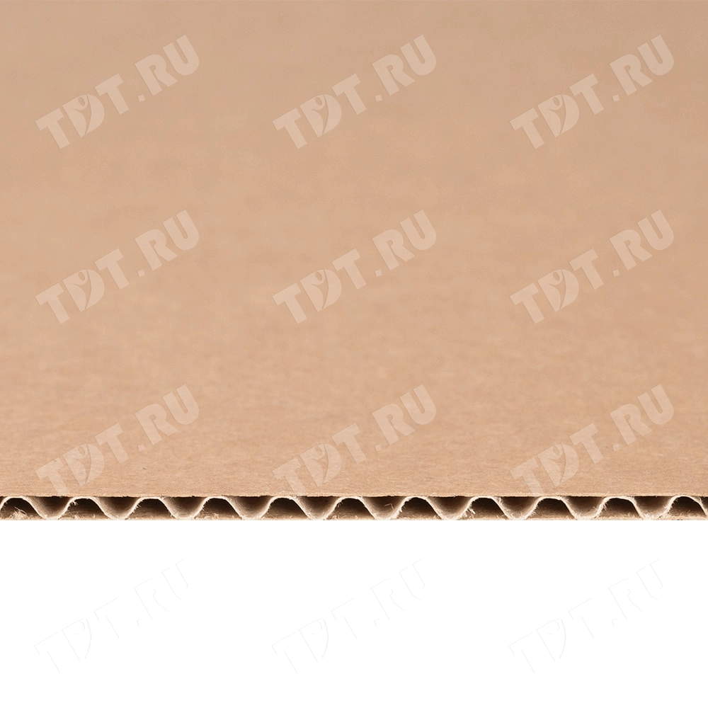 Трехслойный лист гофрокартона, бурого цвета, марки Т-24 В, длиной 2060 мм, шириной 1200 мм, толщиной 2.5-3.2 мм, площадью 2.47 м², направление волны вдоль стороны 1200 мм. Для производства листов используется только первичное высококачественное сырье. Производится в России.