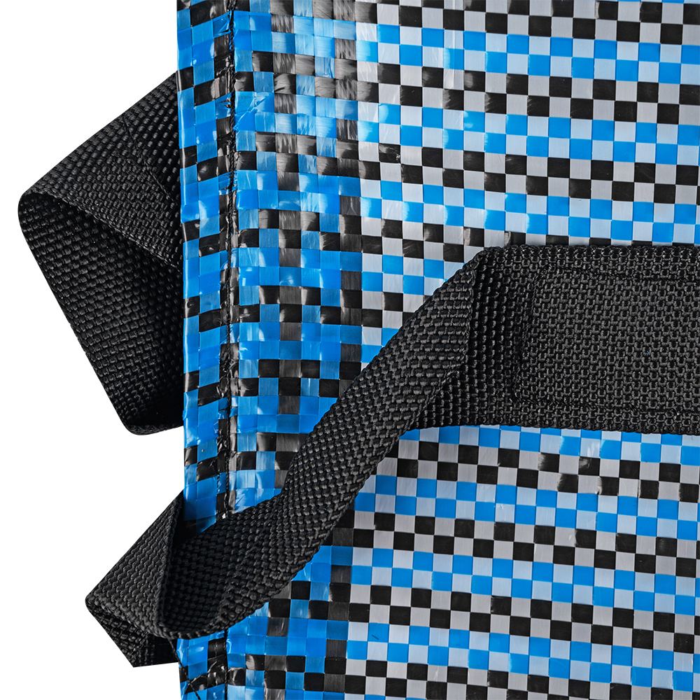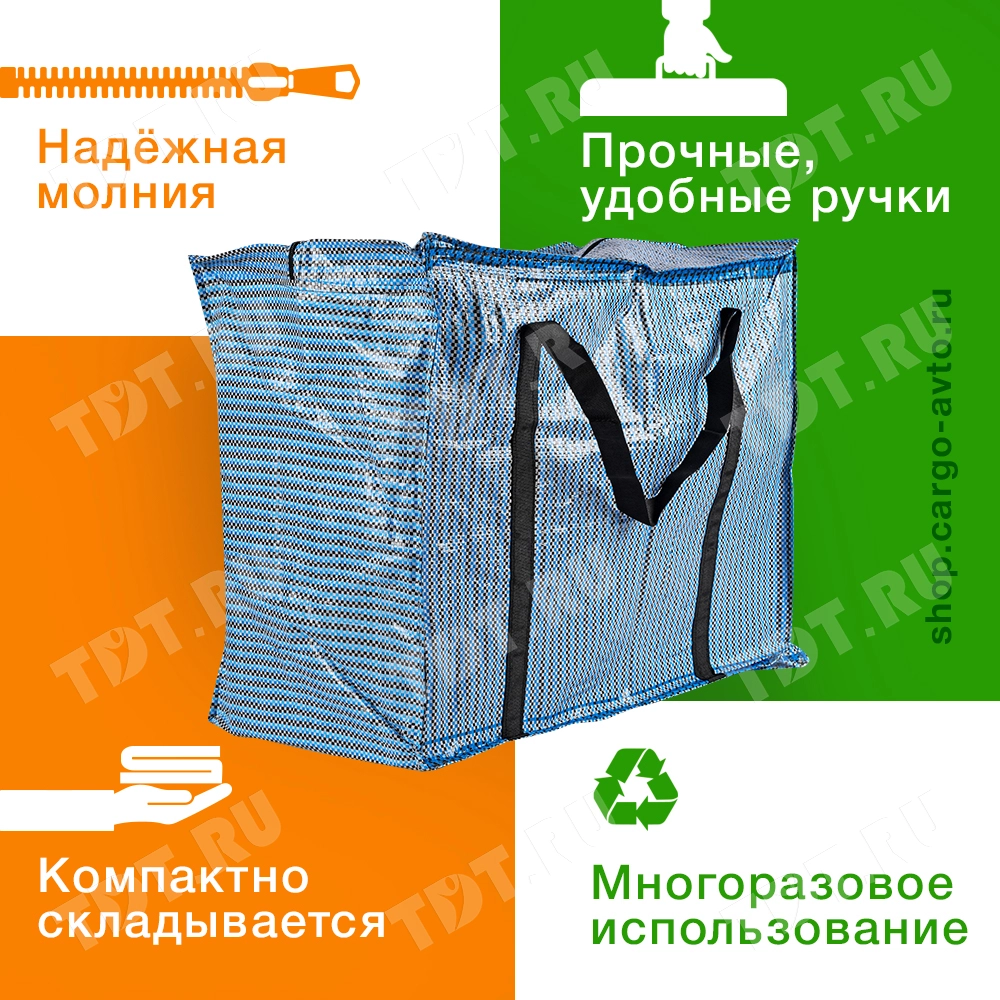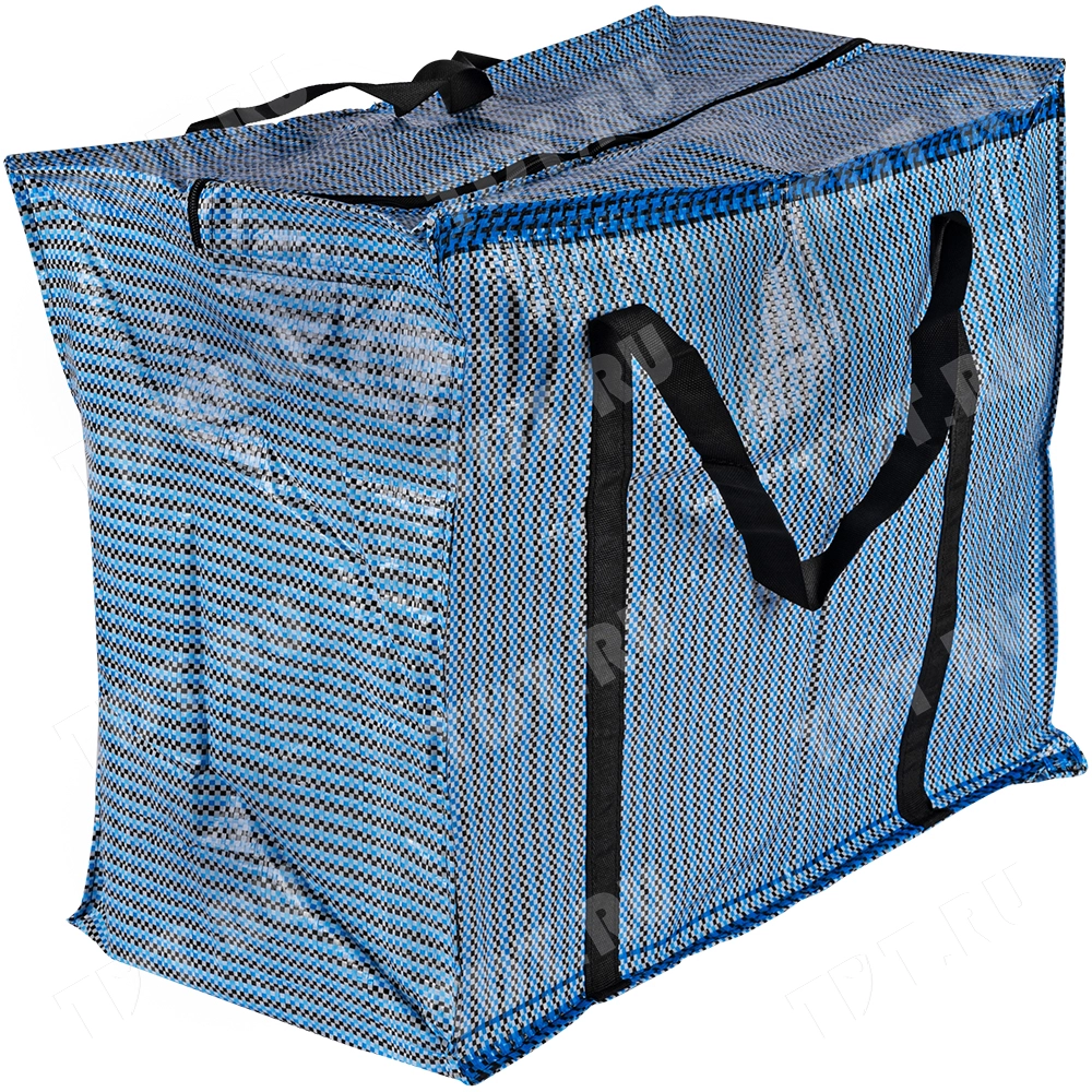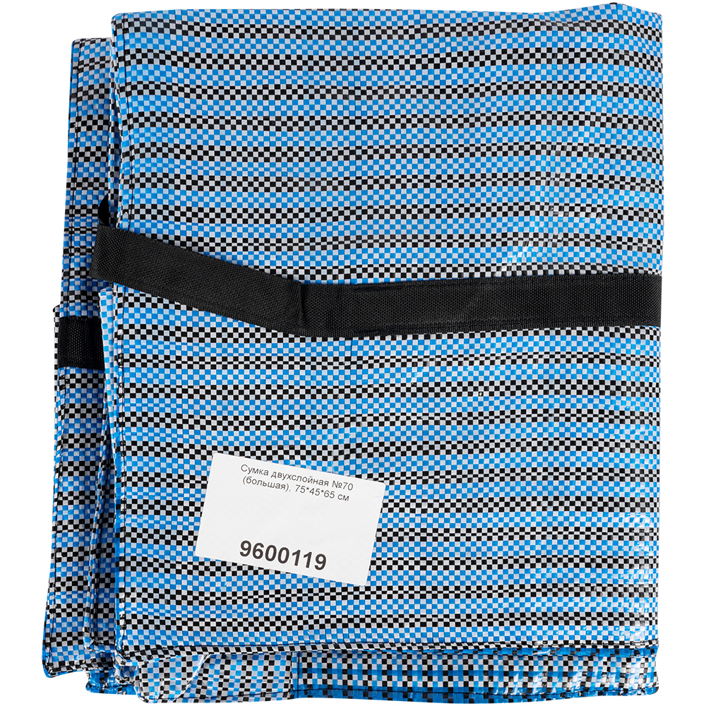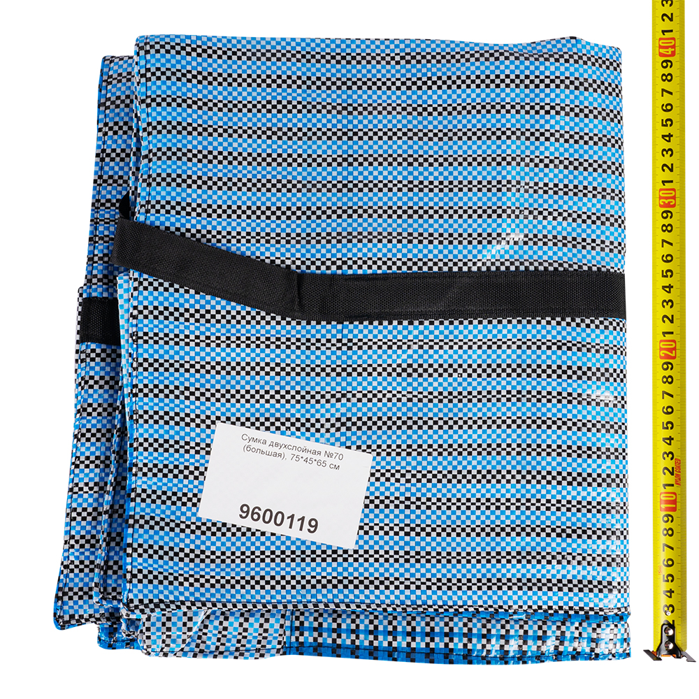 Сумка-баул двухслойная №70 (большая) синего цвета длиной 75 см, шириной 45 см, высотой 65 см, грузоподъемностью 65 кг. Материал полипропилен. Занимает мало места в сложенном виде. Производится в России.