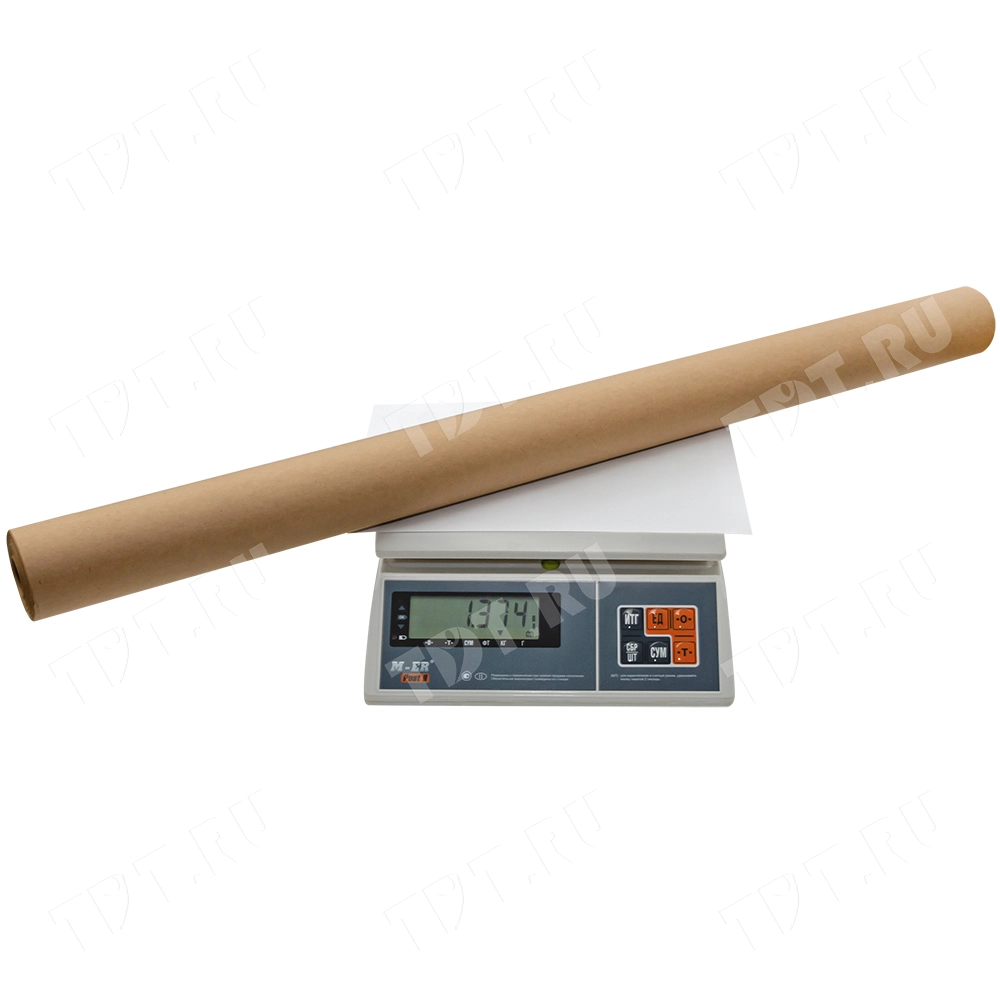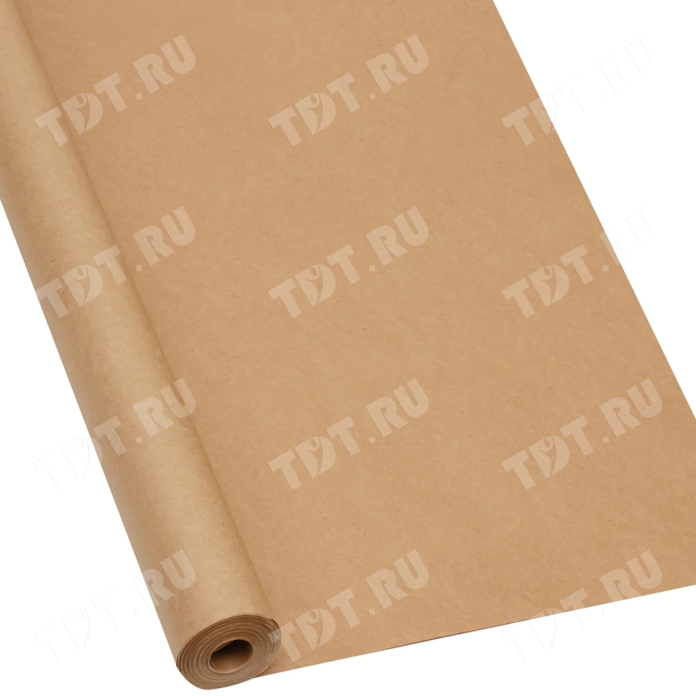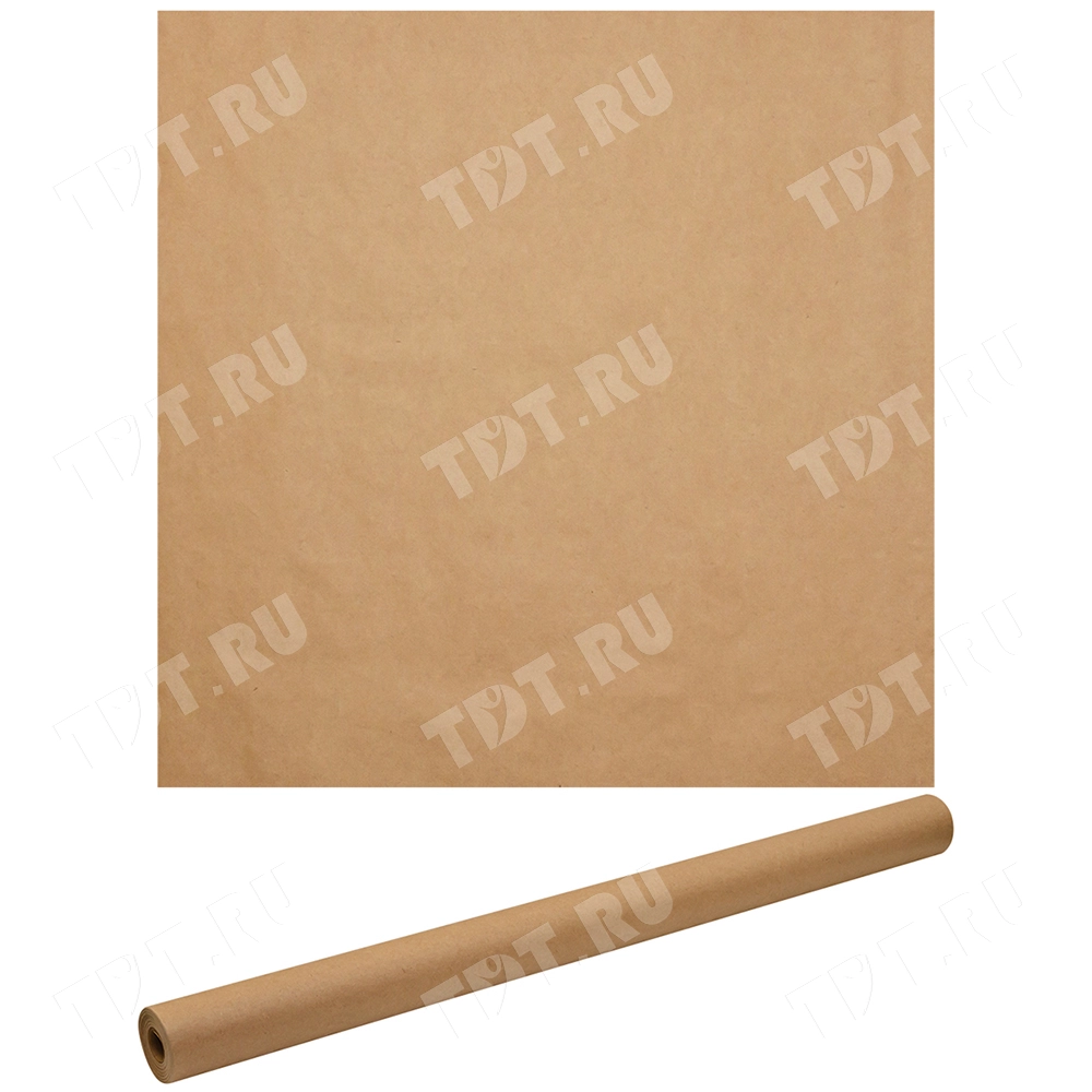 Оберточная крафт бумага в рулоне, шириной 84 см, намоткой 20 м, плотностью 80 г/м². Производится в России.