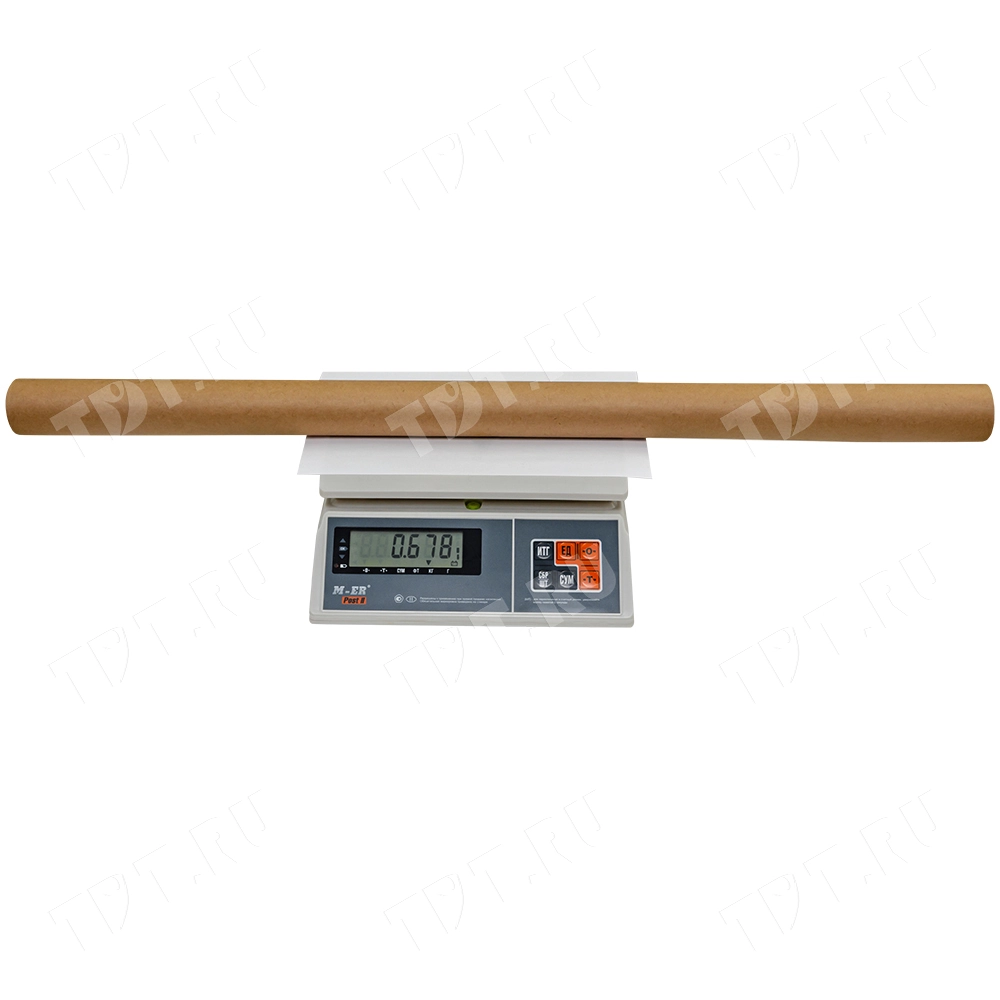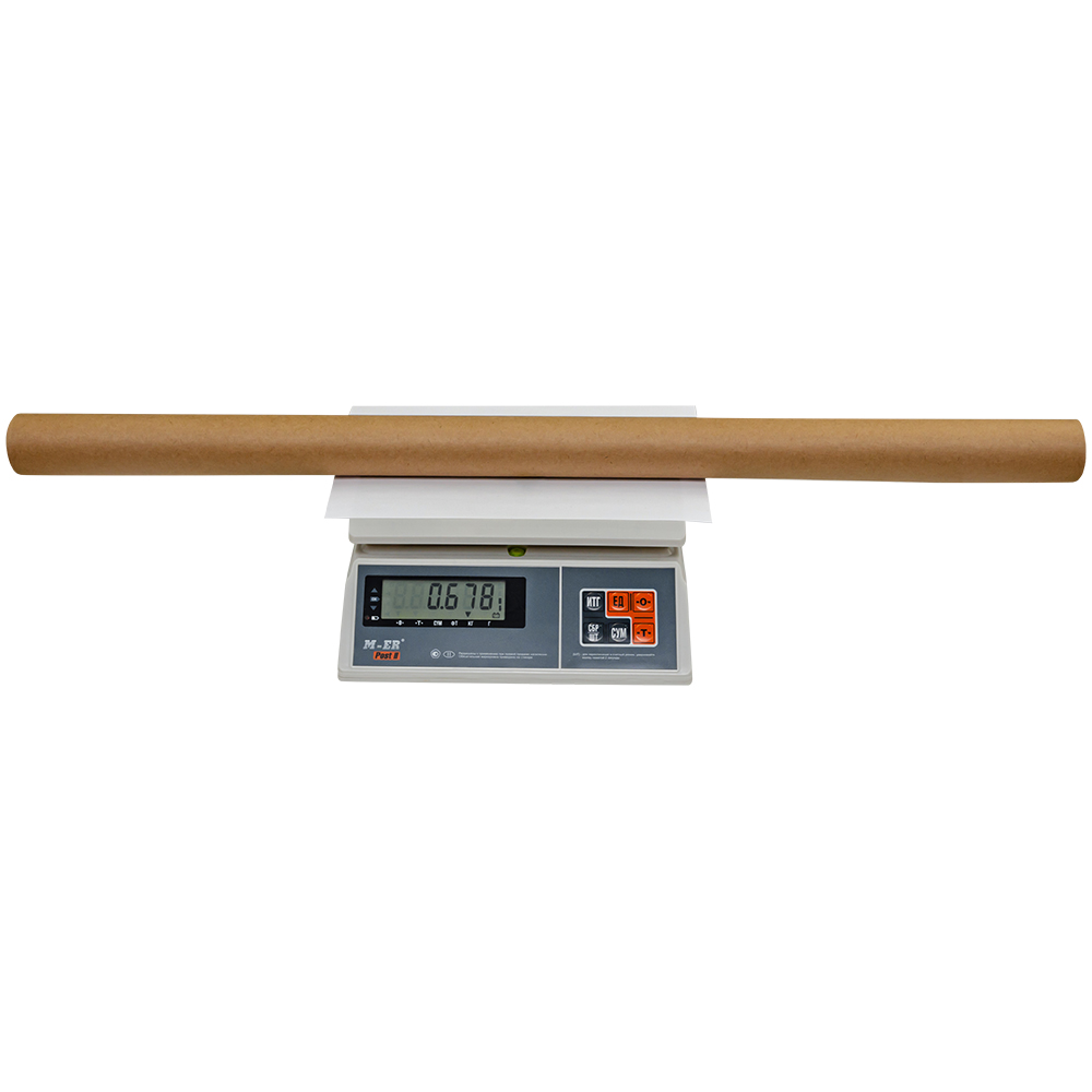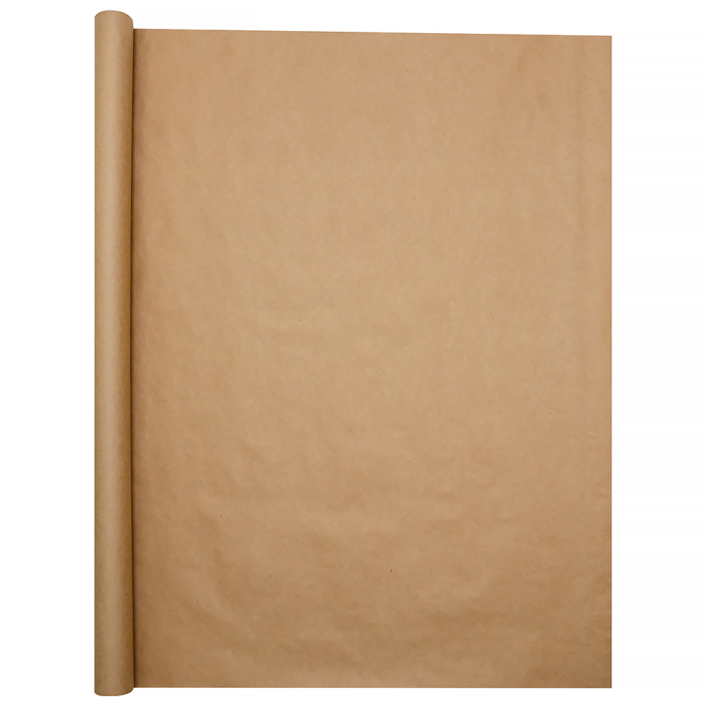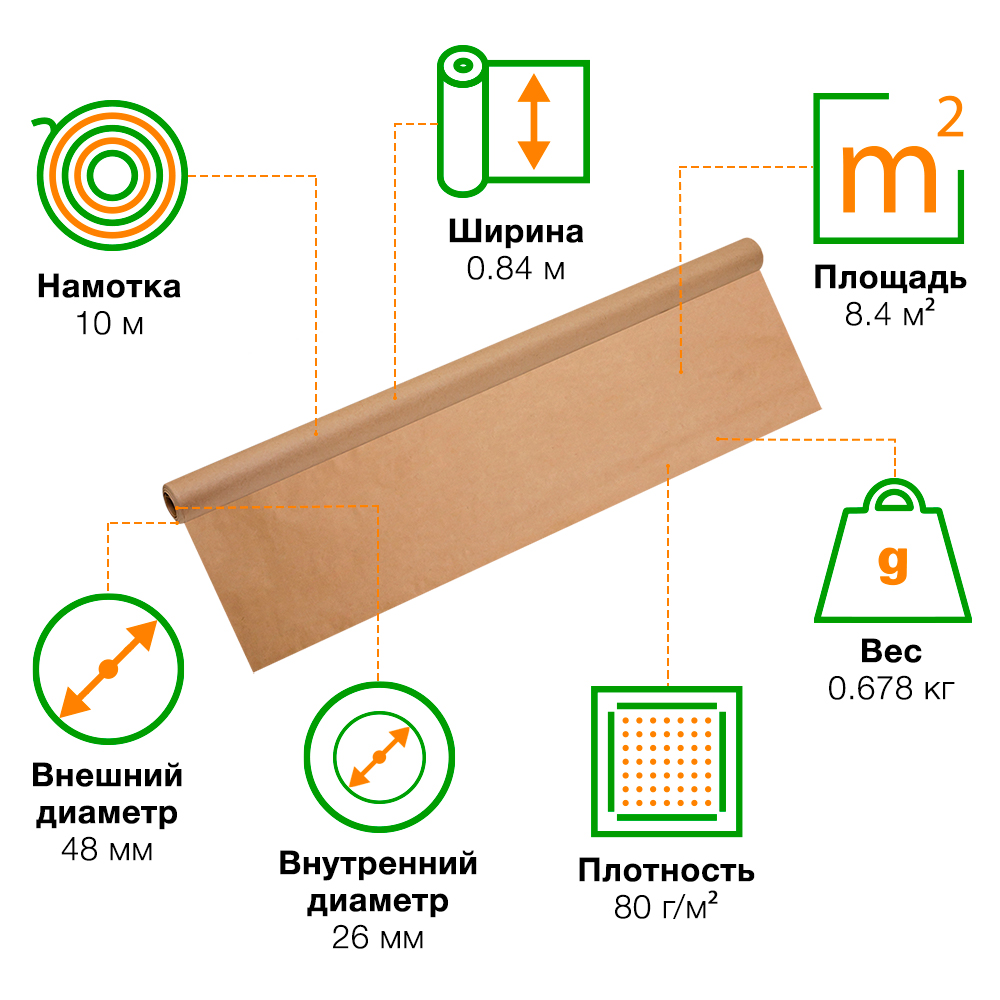 Оберточная крафт бумага в рулоне, шириной 84 см, намоткой 10 м, плотностью 80 г/м². Производится в России.