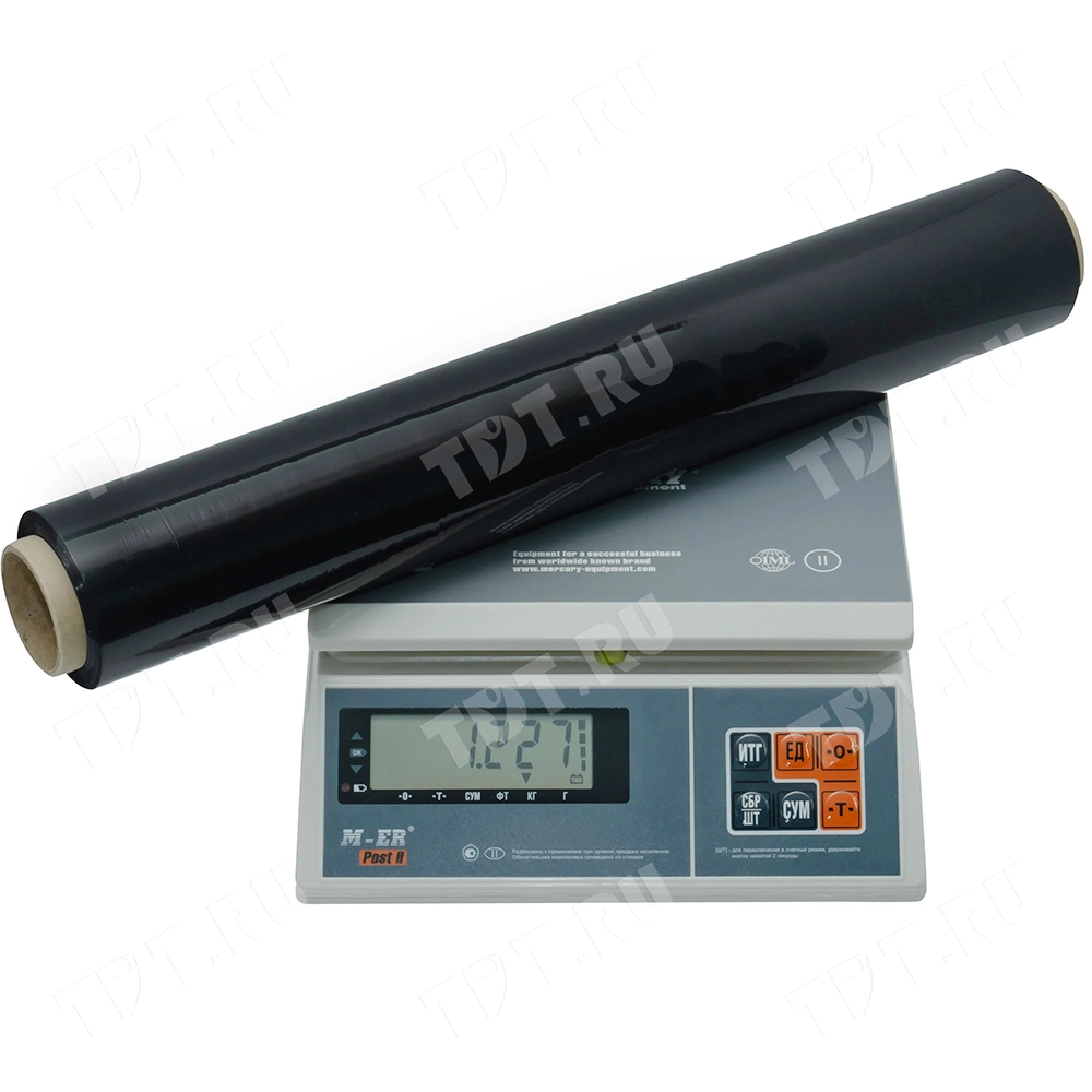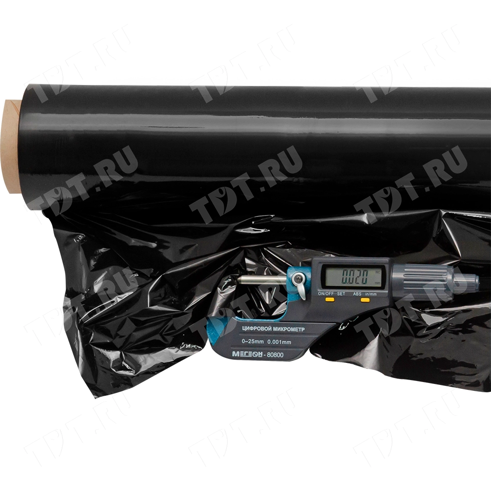 Толщина этой чёрной стрейч плёнки не отличается от толщины стандартной прозрачной и составляет 20 мкм.
