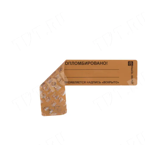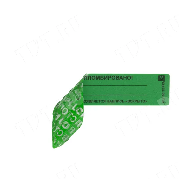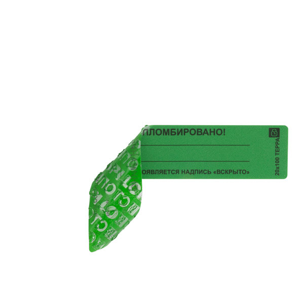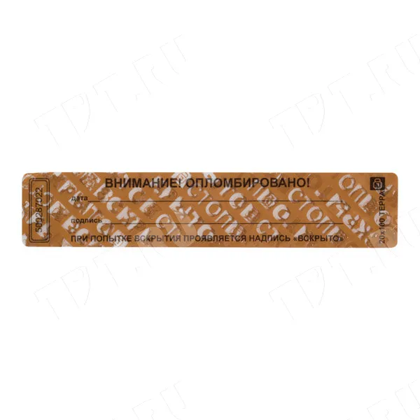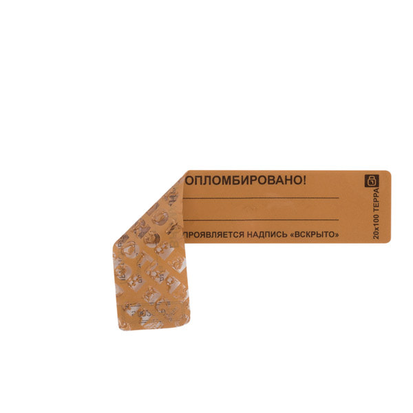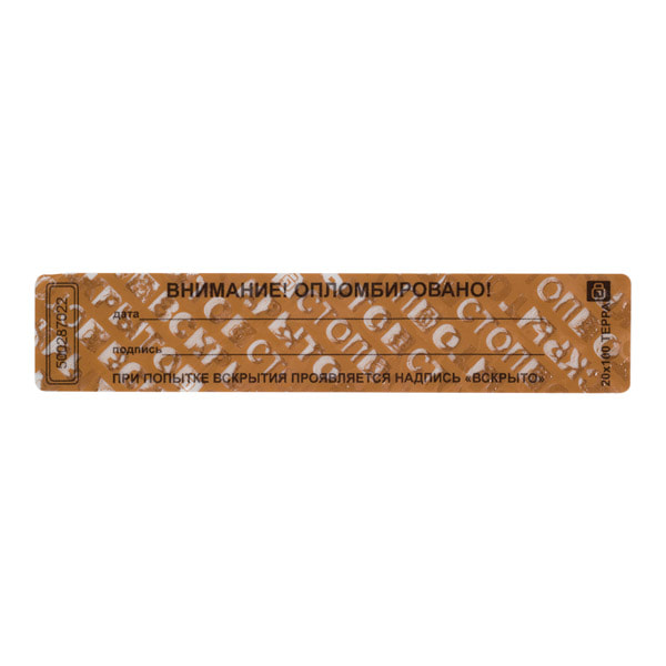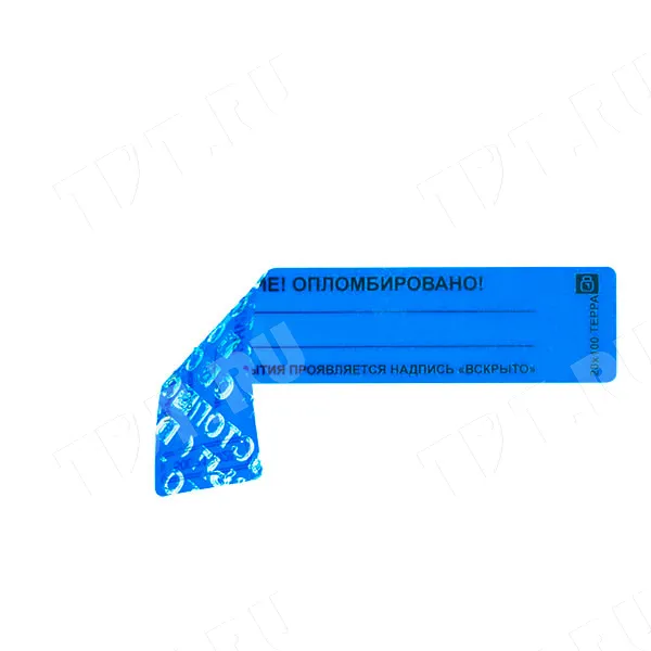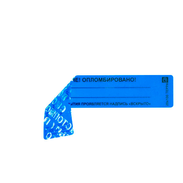 Благодаря наличию специального двухслойного покрытия, стойкого к воздействию влаги и перепадов температур, при вскрытии пломбы на поверхности наклейки проявляется соответствующая надпись "ВСКРЫТО", что не позволяет использовать пломбу наклейку повторно.