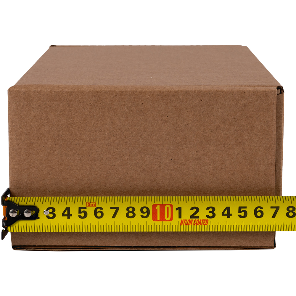 Почтовый короб тип «Д» бурого цвета, длиной 220 мм, шириной 165 мм и высотой 100 мм. Изготовлен из трёхслойного гофрокартона Т-23 В. Полезный объём — 3.63 л.