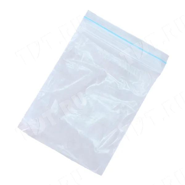 Пакеты Zip-Lock, прозрачного цвета, длиной 70 мм, шириной 50 мм, толщиной 50 мкм, в упаковке по 100 штук. Материал – полиэтилен высокого давления (ПВД). Производятся в России.