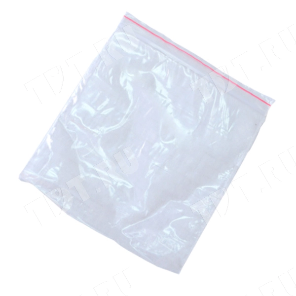 Пакеты Zip-Lock, прозрачного цвета, длиной 100 мм, шириной 100 мм, толщиной 50 мкм, в упаковке по 100 штук. Материал – полиэтилен высокого давления (ПВД). Производятся в России.