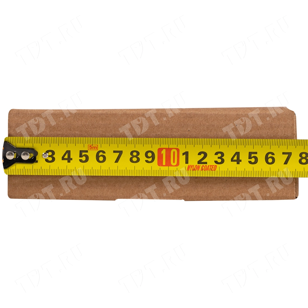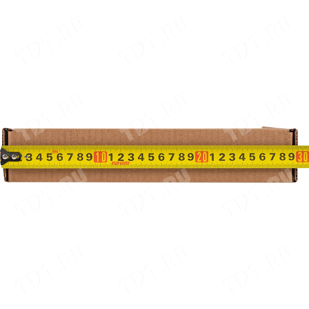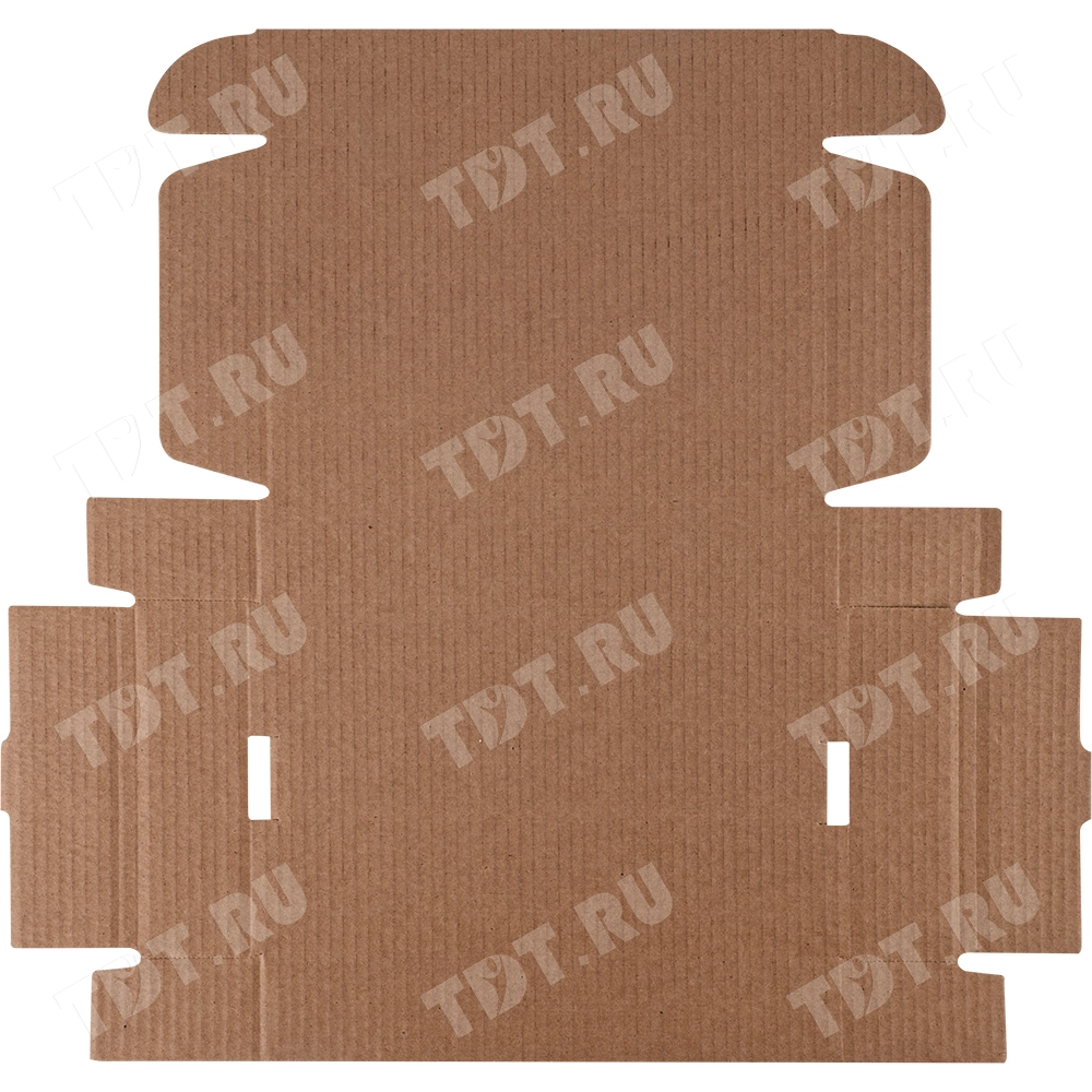 Почтовый короб тип «Е» бурого цвета, длиной 270 мм, шириной 165 мм и высотой 50 мм. Изготовлен из трёхслойного гофрокартона Т-23 В. Полезный объём — 2.23 л.