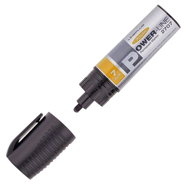 Маркер перманентный LinePlus Power-Line, толщиной пера 7 мм, черного цвета, скошенный наконечник. Производится в Южной Корее.