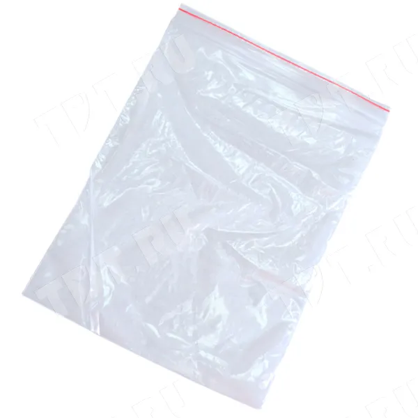 Пакеты Zip-Lock, прозрачного цвета, длиной 200 мм, шириной 150 мм, толщиной 50 мкм, в упаковке по 100 штук. Материал – полиэтилен высокого давления (ПВД). Производятся в России.