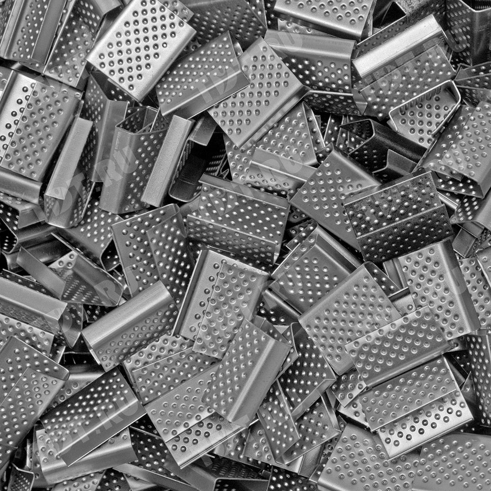 Металлические скобы для полипропиленовых лент (ПП), шириной 16 мм, толщиной 0.5 мм, в упаковке по 1000 шт, весом 3.7 кг, транспортировочным объемом 0.00566 м³. Скобы подходят для лент шириной 15 мм. Производятся в России.