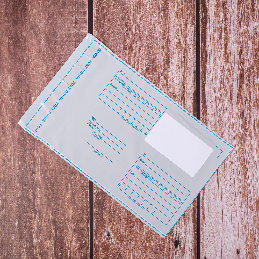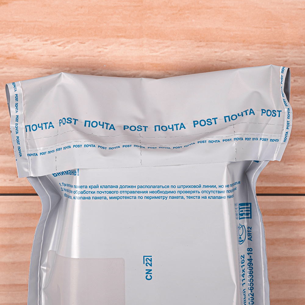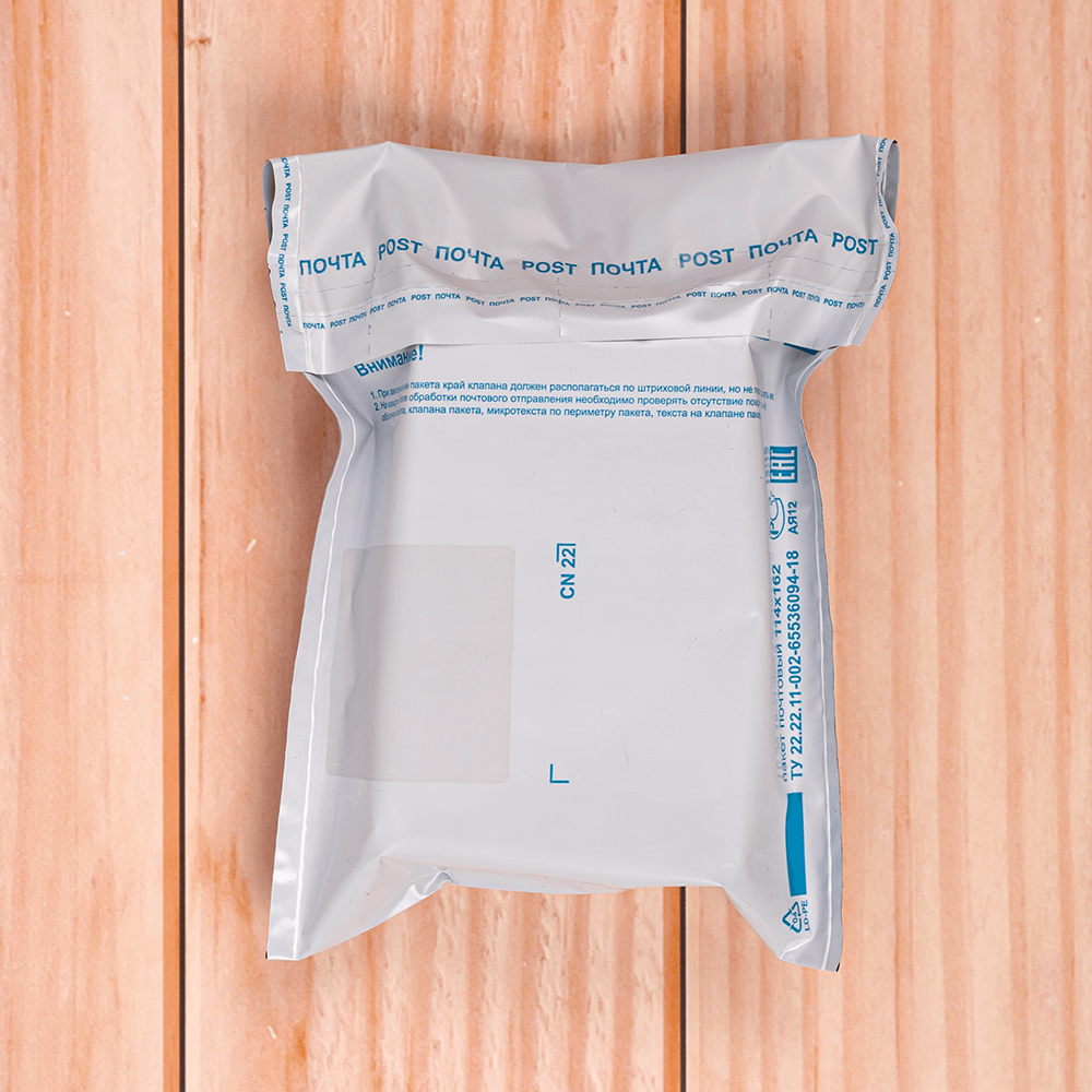 Удобный пластиковый пакет самого маленького размера. Его принимают во всех почтовых отделениях страны.
