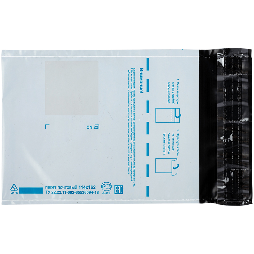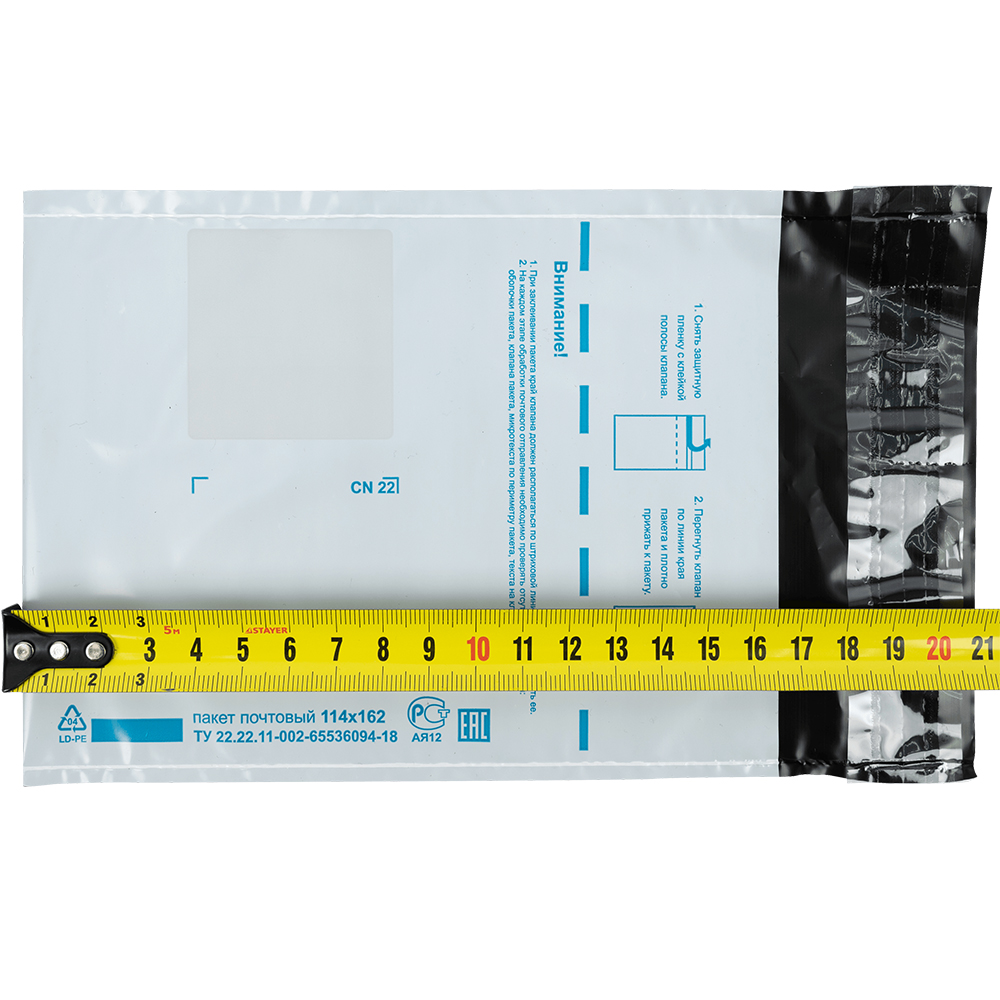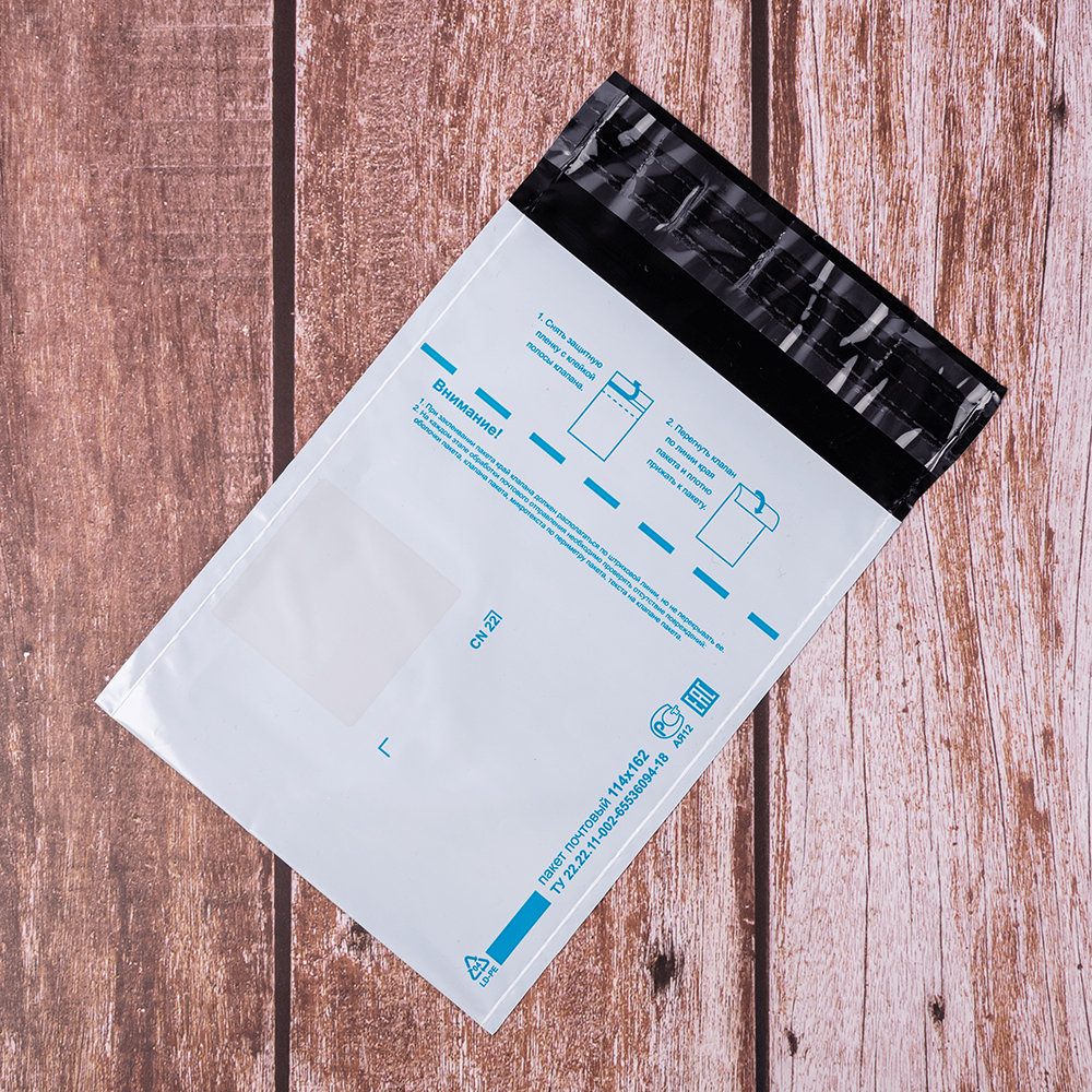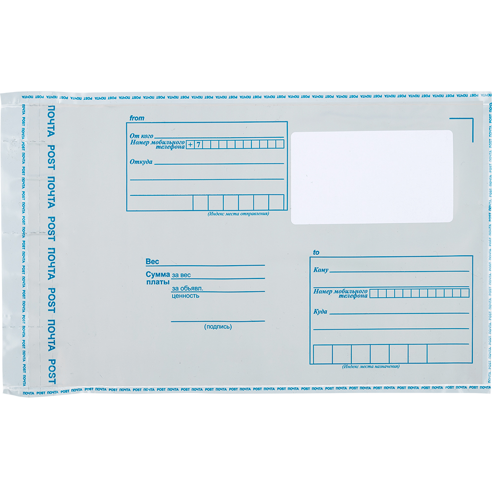 Удобный пластиковый пакет самого маленького размера. Его принимают во всех почтовых отделениях страны.