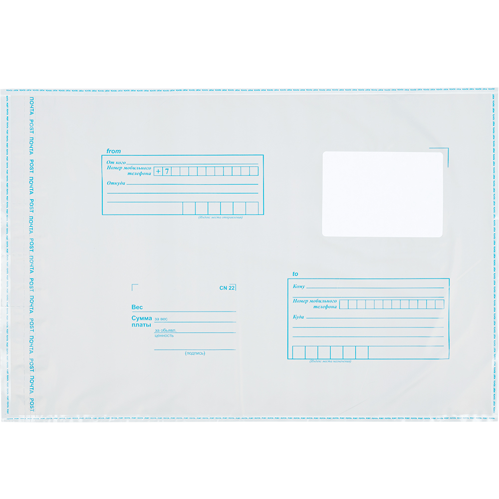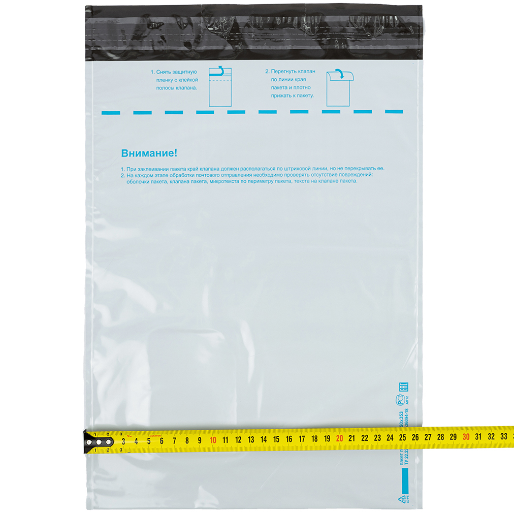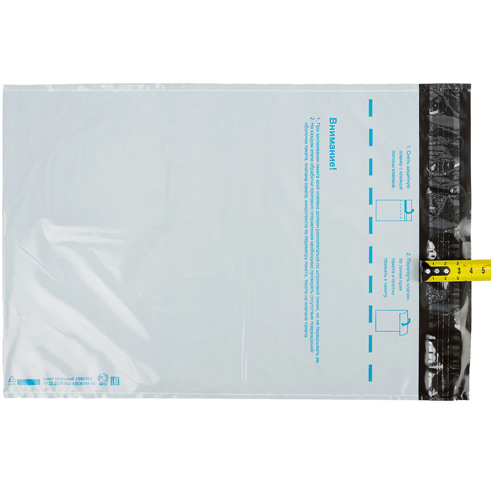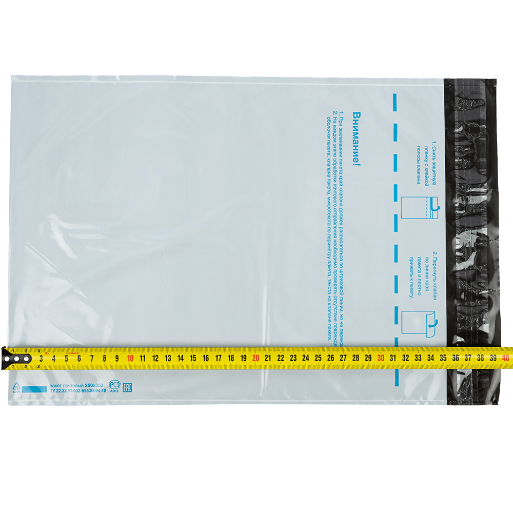 Почтовый пластиковый пакет не тянется, выдерживает большой вес и прочен на разрыв.
