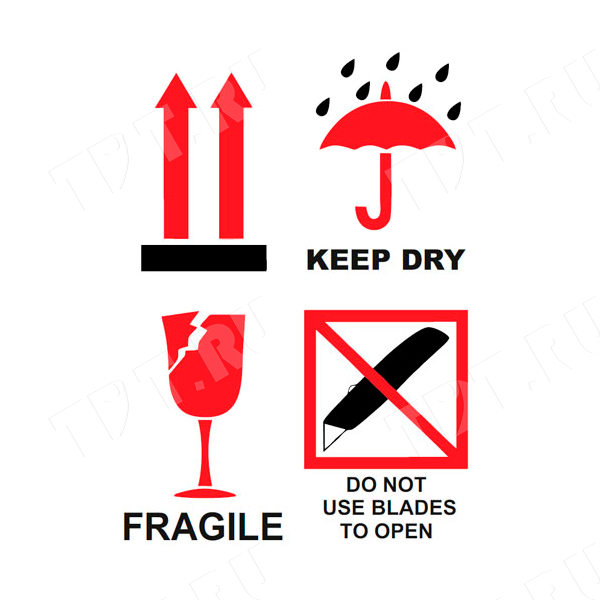 Если вам доводится иметь дело с такими вот капризными грузами, то на все их капризы предлагаем вам один ответ: набор специальных наклеек Ассорти. Коробку с каждый капризным грузом можно маркировать соответствующим образом и, как говорится, спать спокойно.