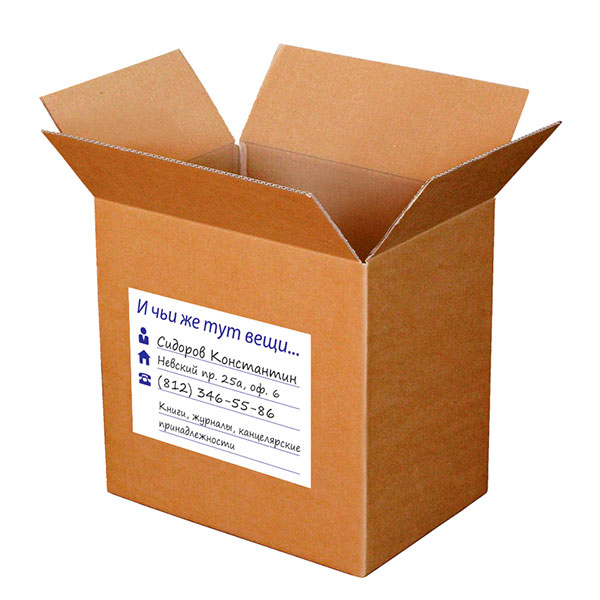Забавный стикер «И чьи же тут вещи» поможет разрешить множество затруднительных ситуаций, связанных с переездом. Несмотря на оригинальную надпись, понадобится он для вполне серьезных вещей.