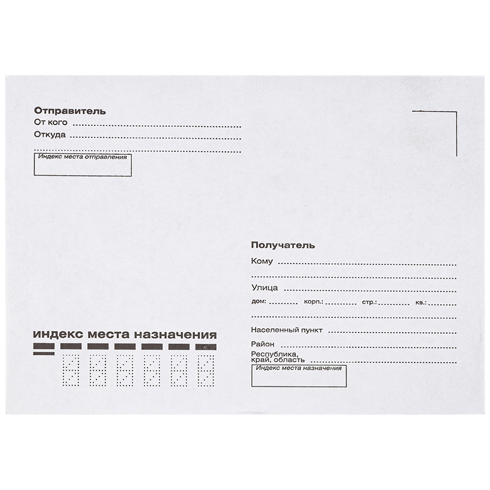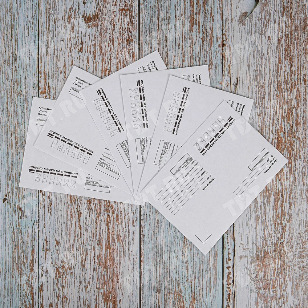 Стандартный бумажный конверт (114*162 мм) для отправки уведомлений, корреспонденции, различной документации почтой России.