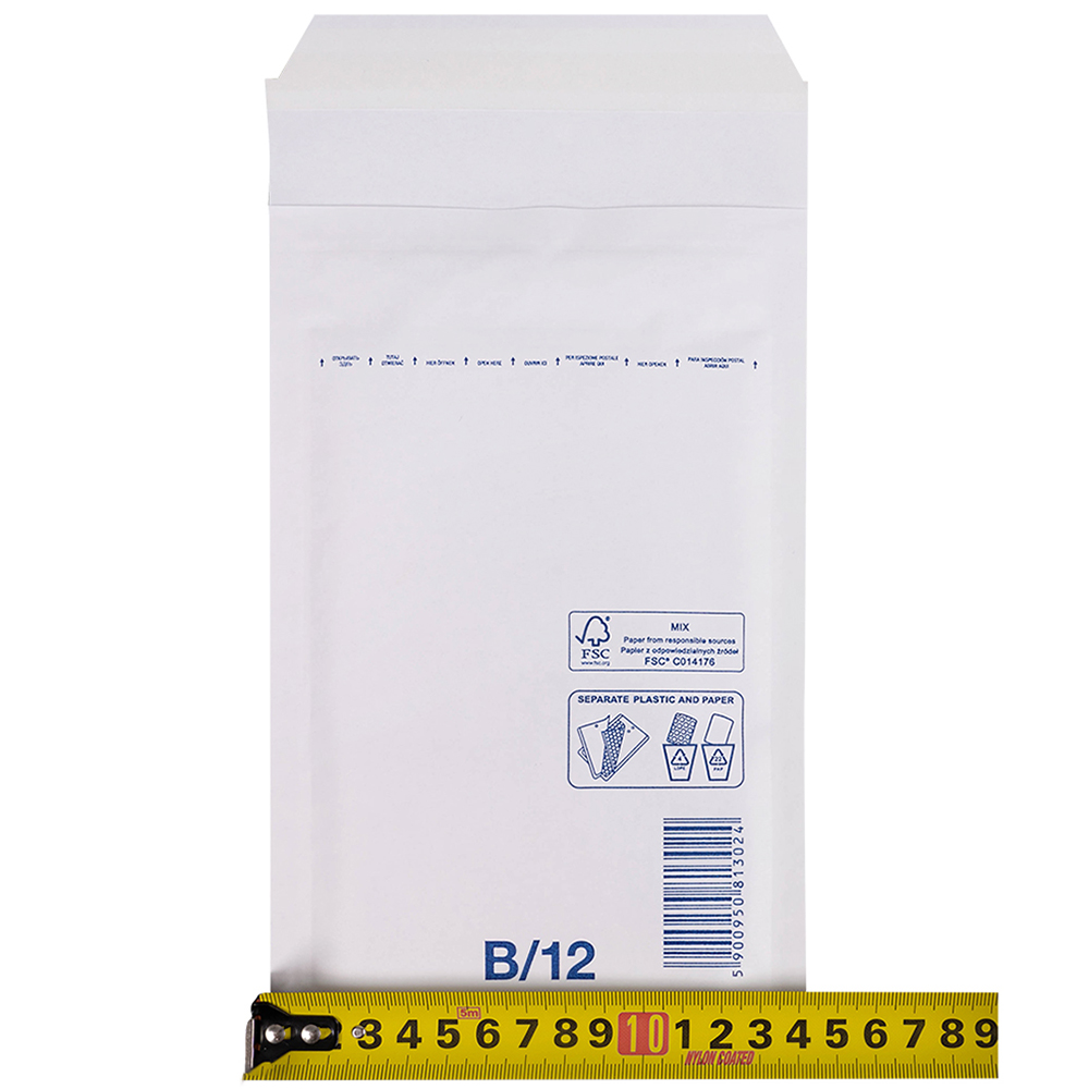 Белый крафт-пакет с воздушной прослойкой шириной 14 см и длиной 22 см. Внутренние размеры - 12*21 см. Изготовлен из крафт-бумаги и полиэтилена (внутренняя вставка). Производится в России.