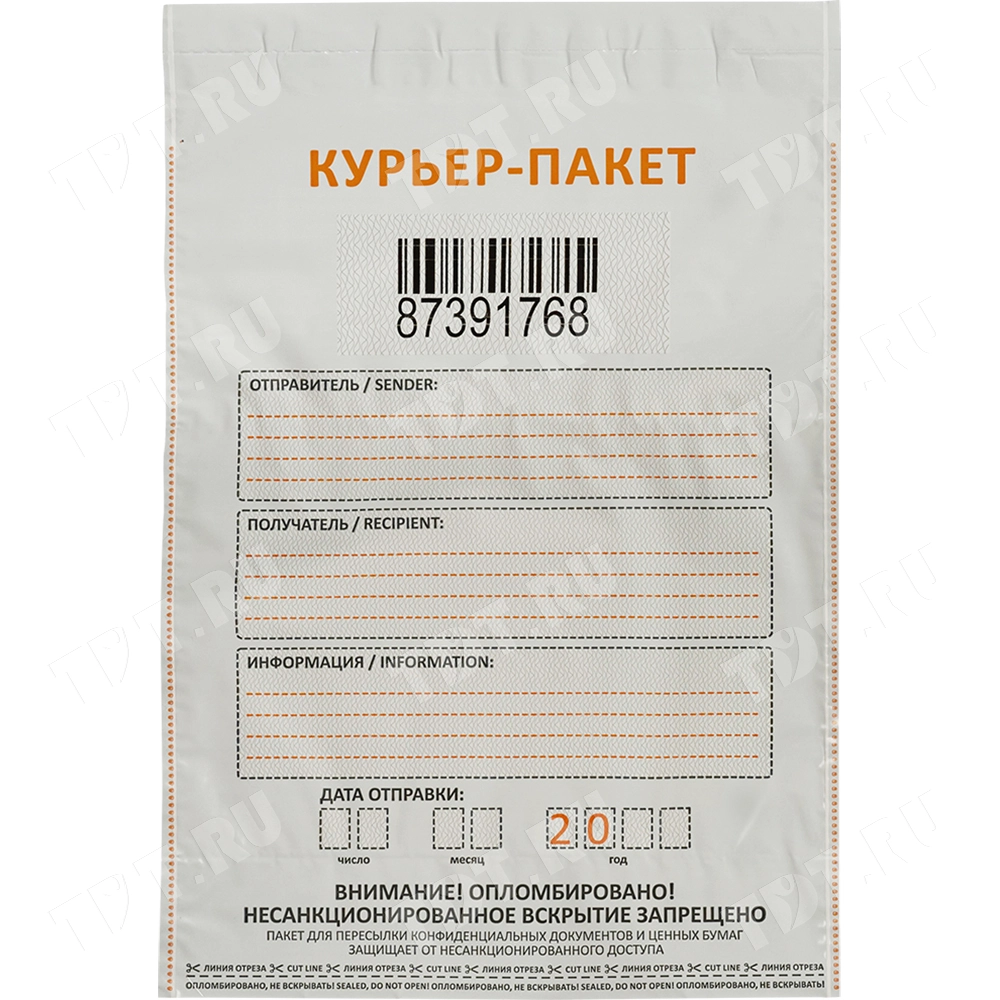 Курьер-пакет белый с печатью, с карманом, 243*320+40 мм, 50 мкм, 1 шт.