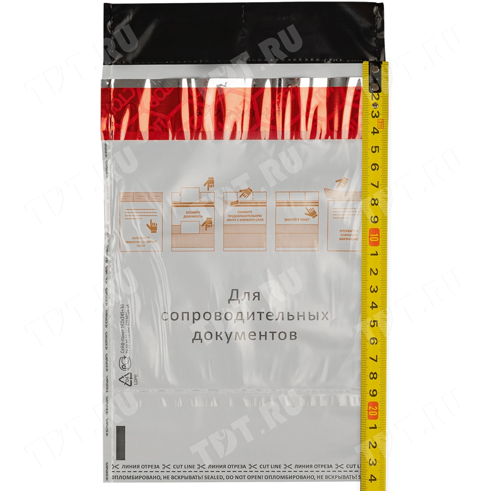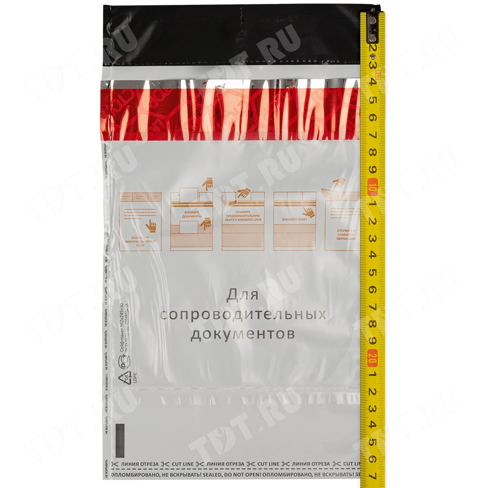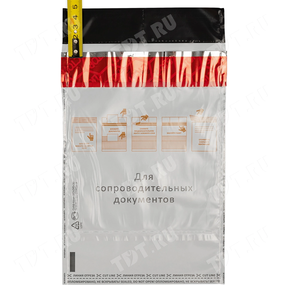 Высота (длина) сейф пакета составляет 23.5 см без учета клапана.