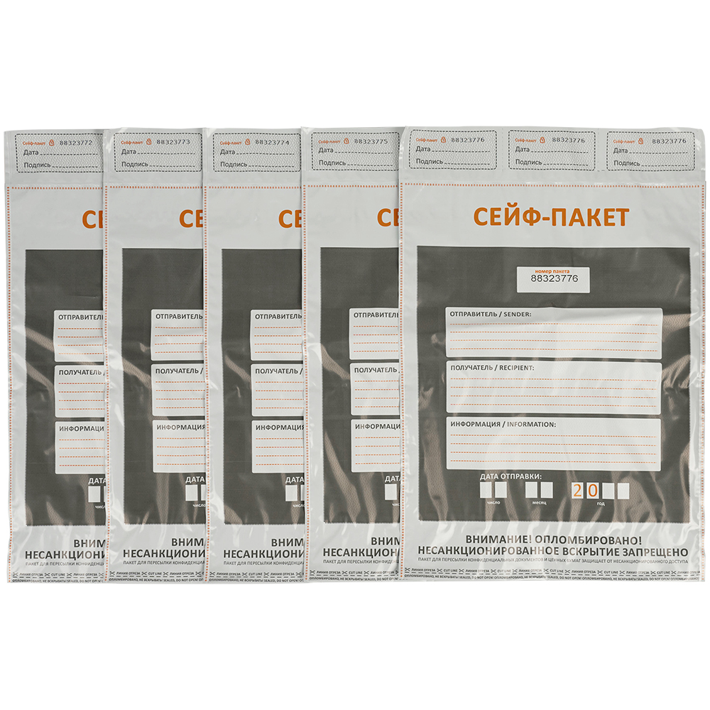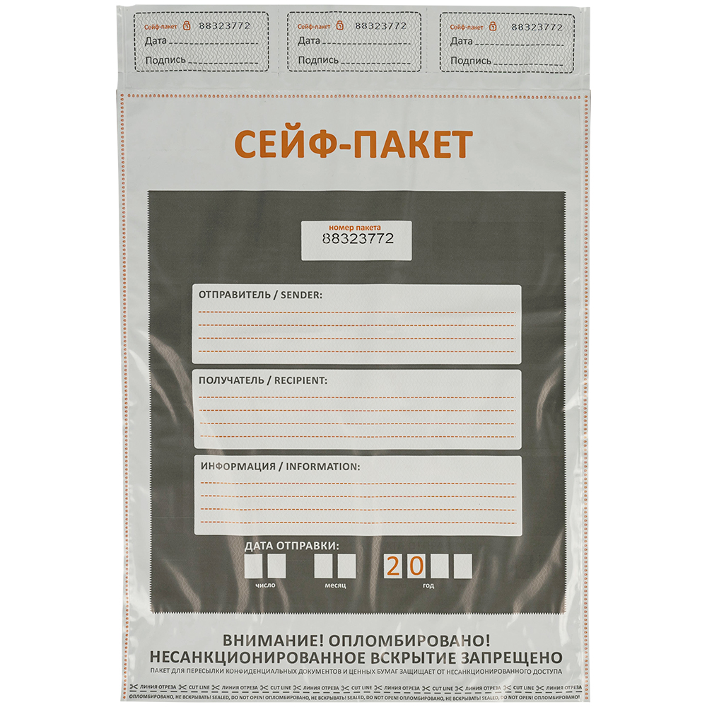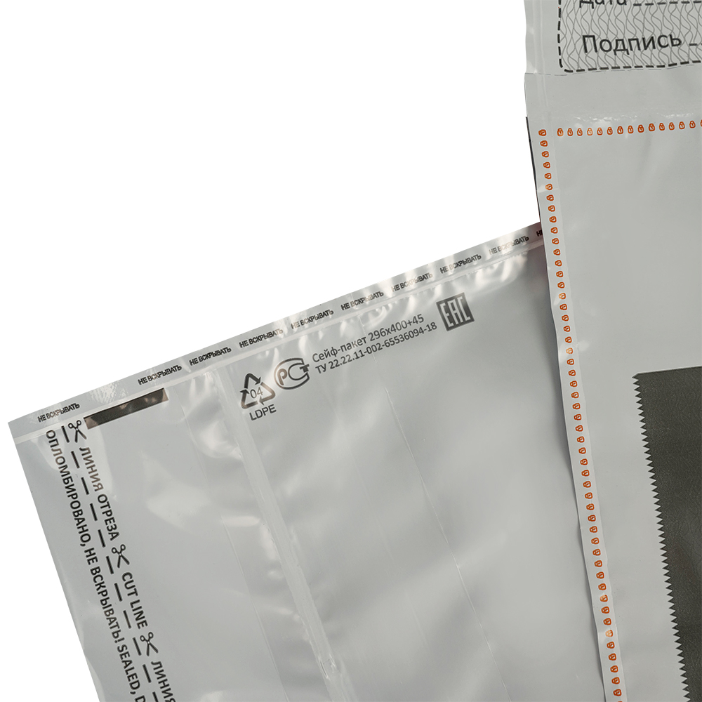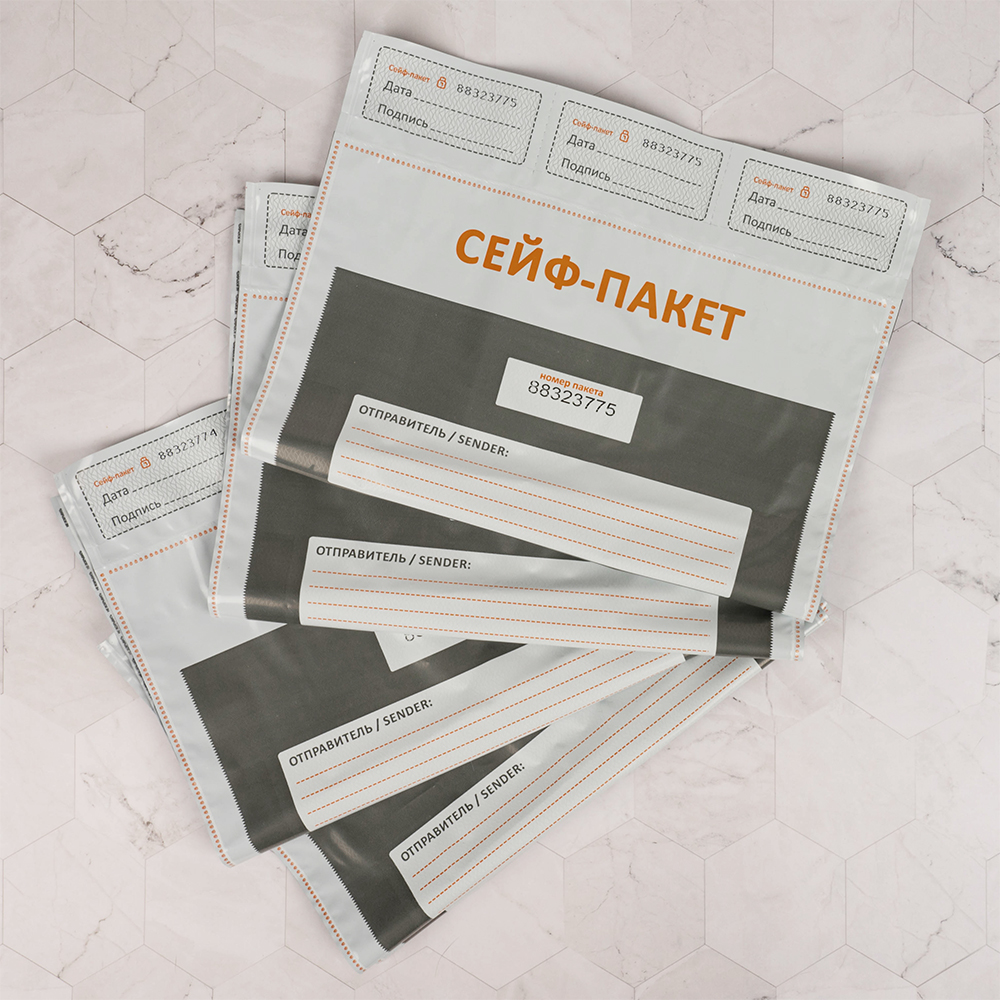 Данный сейф-пакет изготовлен из высокопрочного пятислойного полиэтилена.
