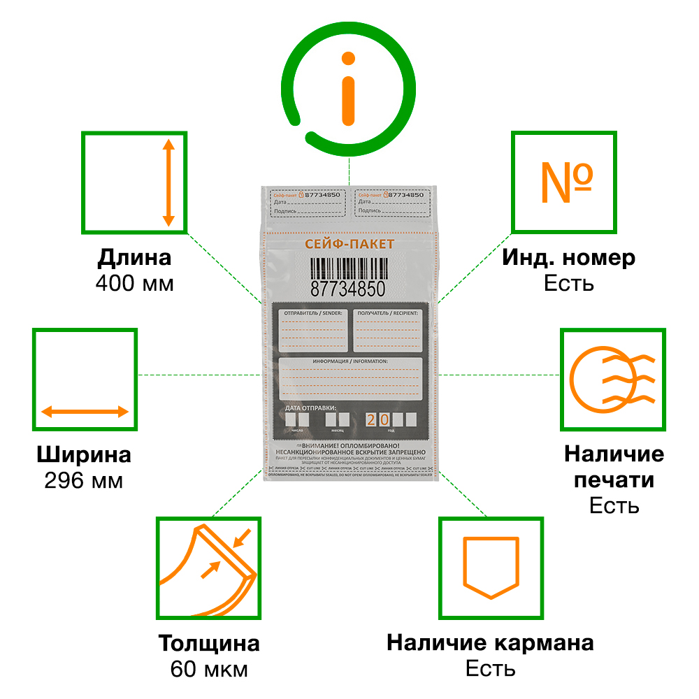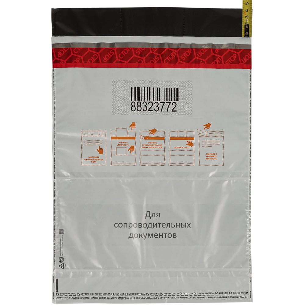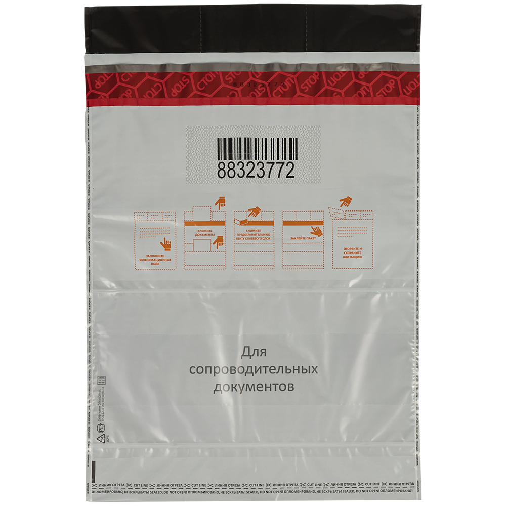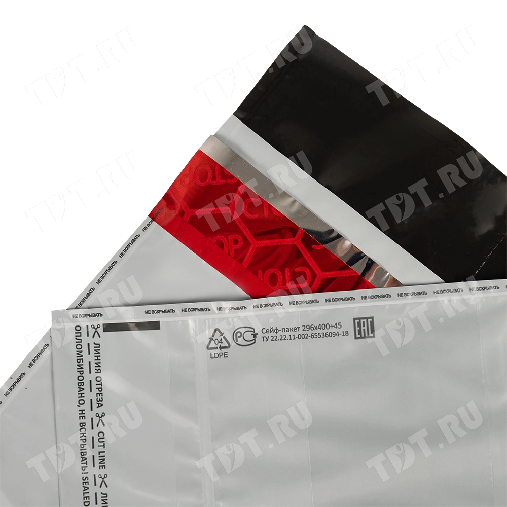 Данный сейф-пакет изготовлен из высокопрочного пятислойного полиэтилена.