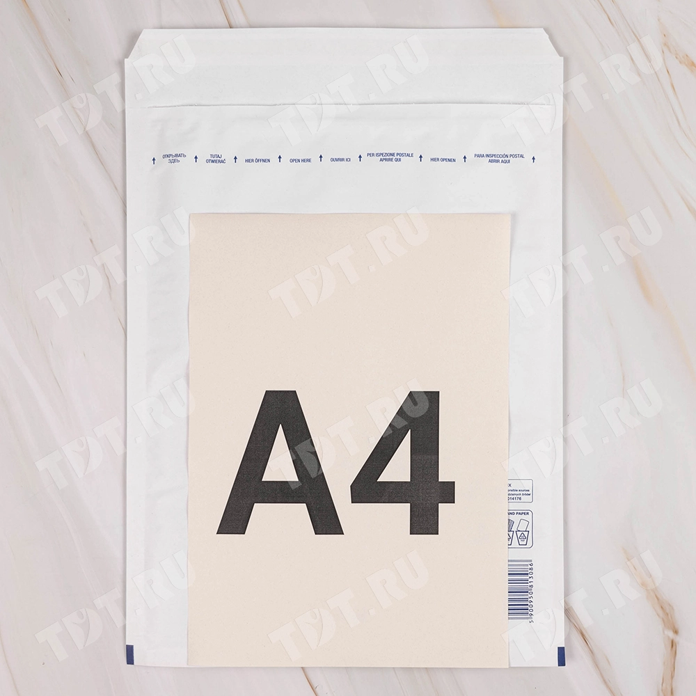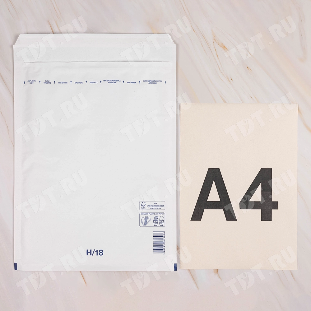 Белый крафт-пакет с воздушной прослойкой шириной 29 см и длиной 37 см. Внутренние размеры - 27*36 см. Изготовлен из крафт-бумаги и полиэтилена (внутренняя вставка). Производится в России.