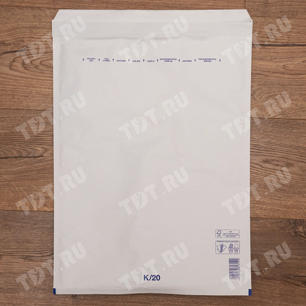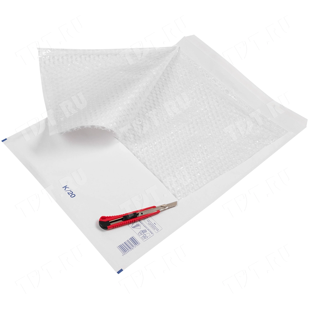 Белый крафт-пакет с воздушной прослойкой шириной 37 см и длиной 48 см. Внутренние размеры - 35*47 см. Изготовлен из крафт-бумаги и полиэтилена (внутренняя вставка). Производится в России.