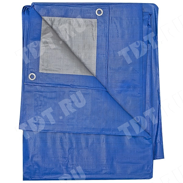 Синий защитный тент «Тарпаулин®» с люверсами из особо прочной полиэтиленовой ткани длиной 4 м, шириной 3 м, площадью 12 м², плотностью 180 г/м². Производится в России.