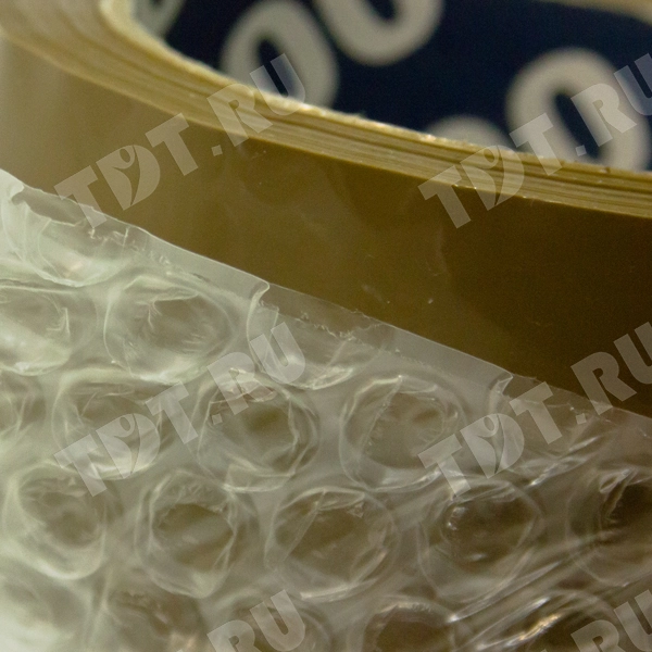 Прозрачная трехслойная воздушно-пузырчатая пленка «Стандарт Плюс», намоткой 50 м, шириной рулона 1.5 м, диаметром пузырька 10 мм, плотностью 60 г/м². Изготовлена из полиэтилена. Производится в России.
