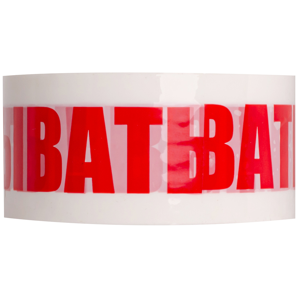 Белая клейкая лента с красной надписью «Не вскрывать!» шириной 48 мм, диаметром втулки 76 мм, намоткой 51 метр. Изготовлена на основе полипропилена.