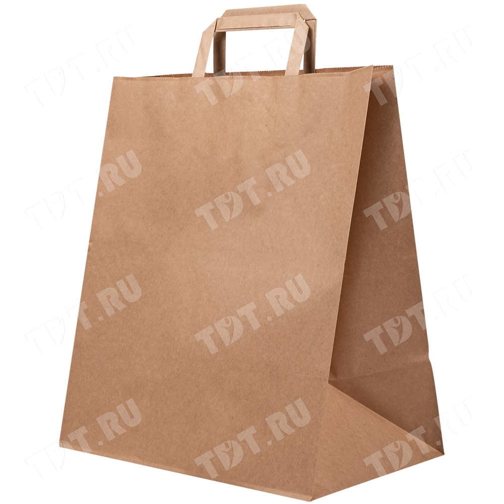 Крафт пакет с плоской ручкой, 70 г/м², 32*20*37 см