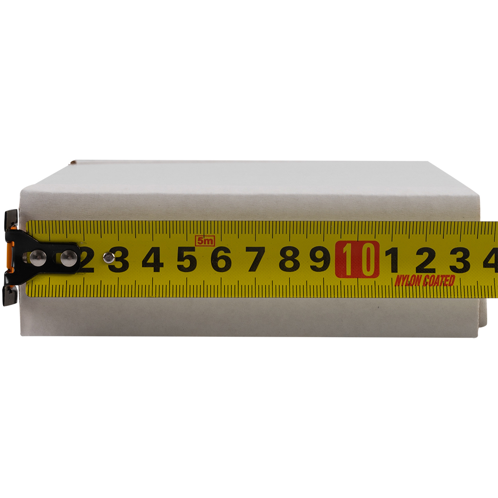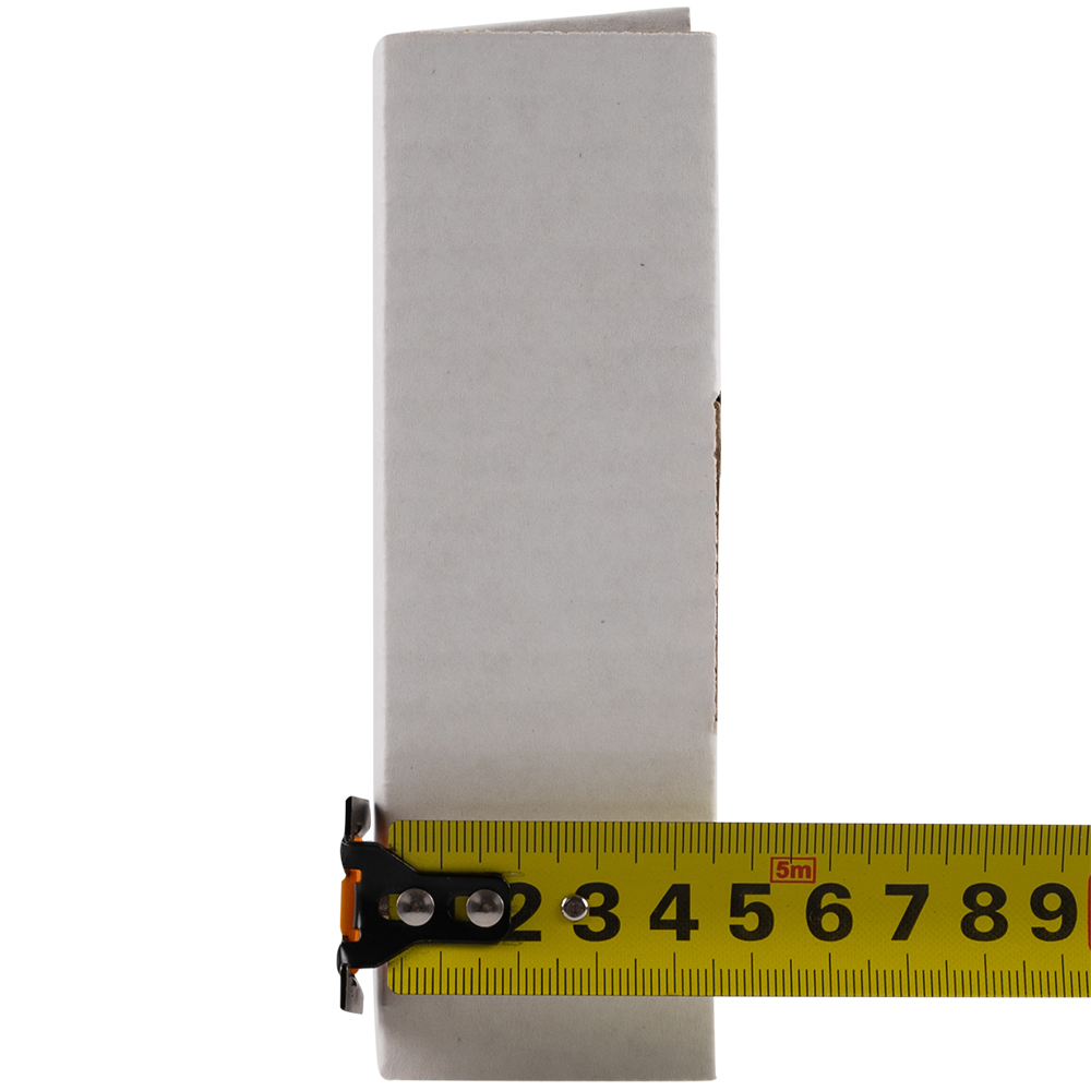 Короб №64 белёный, длиной 170 мм, шириной 130 мм и высотой 40 мм. Изготовлен из гофрокартона Т-23 В (целлюлоза). Полезный объём — 0.9 л.