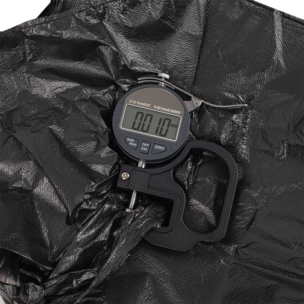 Толщина чёрного пакета майка составляет 9 мкм. У всех пакетов из одной упаковки будет одинаковая толщина.