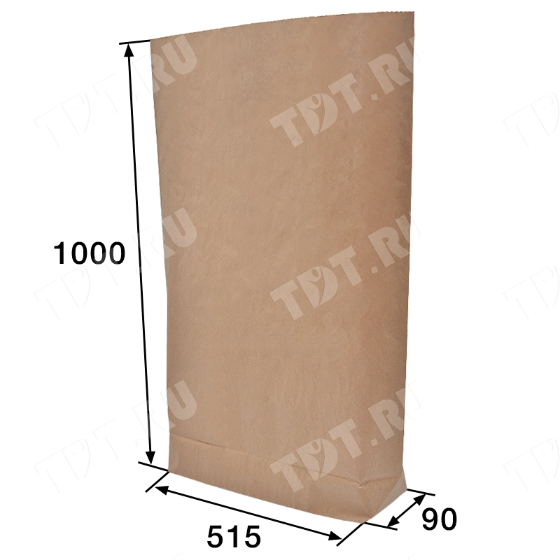 Бумажный четырехслойный крафт мешок без ручек шириной 90 мм, длиной 515 мм, высотой 1000 мм изготовлен из экологичного материала. Пакеты производятся в России.