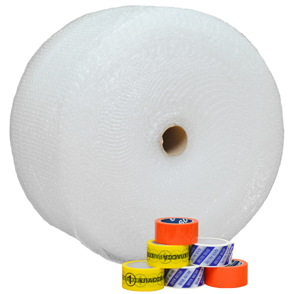 Прозрачная двухслойная воздушно-пузырчатая пленка «Компакт», намоткой 100 м, шириной рулона 0.3 м, диаметром пузырька 10 мм, плотностью 40 г/м². Изготовлена из полиэтилена. Производится в России.