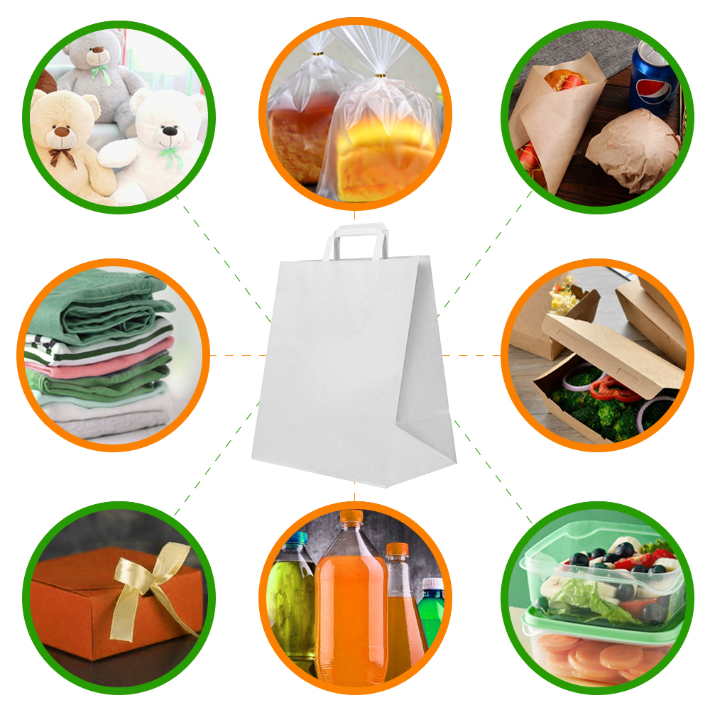Белые пакеты с плоской ручкой используются для упаковки, переноски и хранения товаров. Подходит магазинам и производителям ЭКО продукции. Логотип или рисунок, нанесенный на боковую поверхность, будет хорошим рекламным носителем, промо-упаковкой для мероприятий.