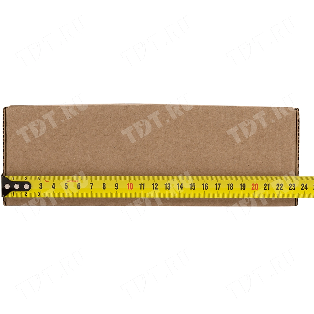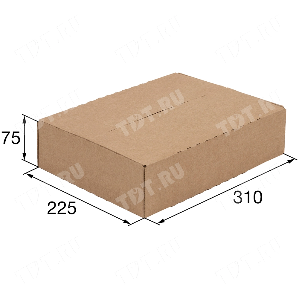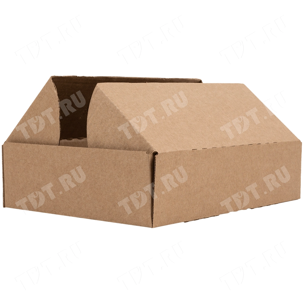 Книжный лоток №5, бурый, длиной 310 мм, шириной 225 мм и высотой 75 мм. Изготовлен из трёхслойного картона Т-23 В. Полезный объём — 5.2 л.