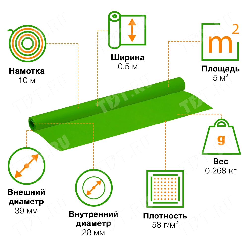 Пергамент в рулоне, салатового цвета, шириной 50 см, намоткой 10 м, толщиной 50 мкм. Флористический пергамент изготовлен из натуральной целлюлозы и окрашен в насыщенный цвет. Прочный, не боится влаги. Производится в России.