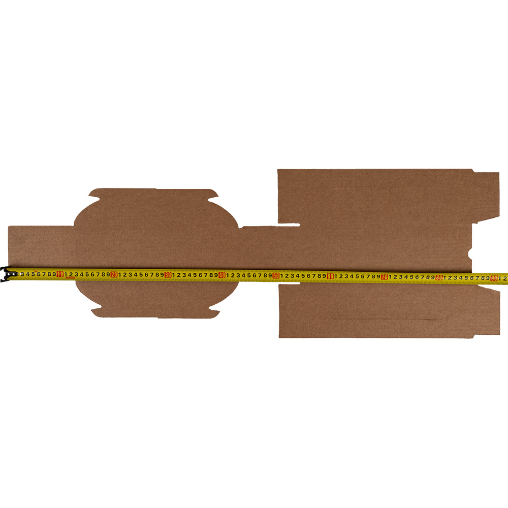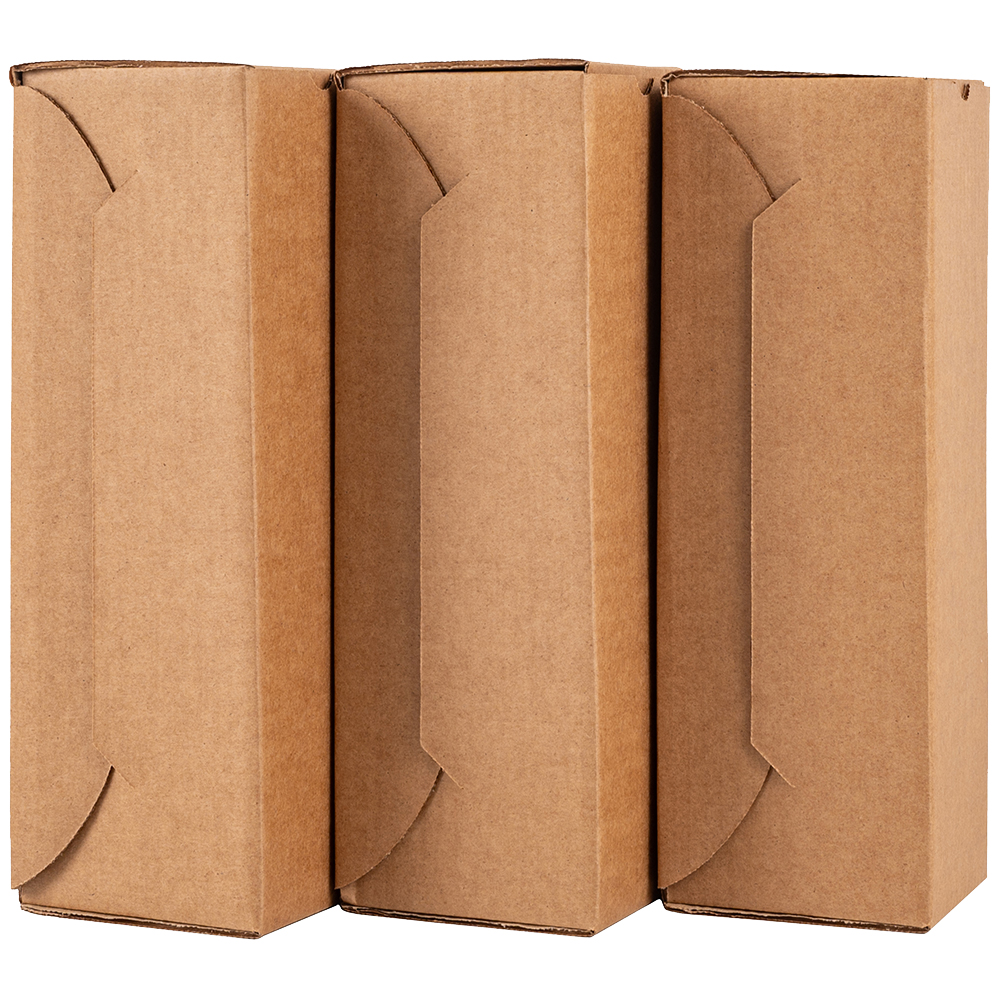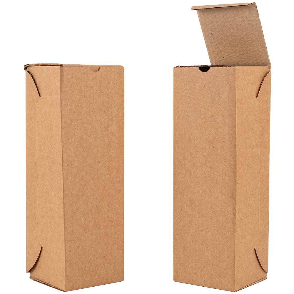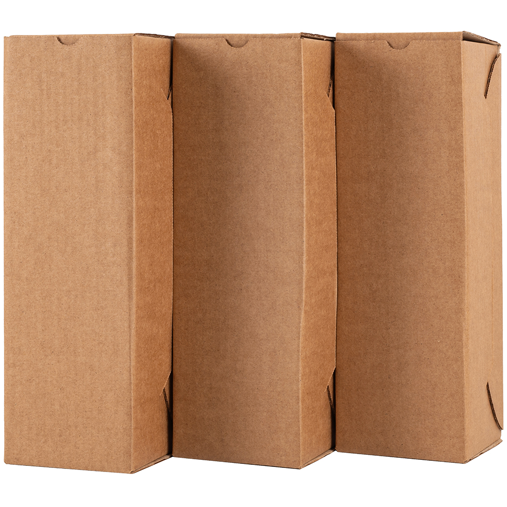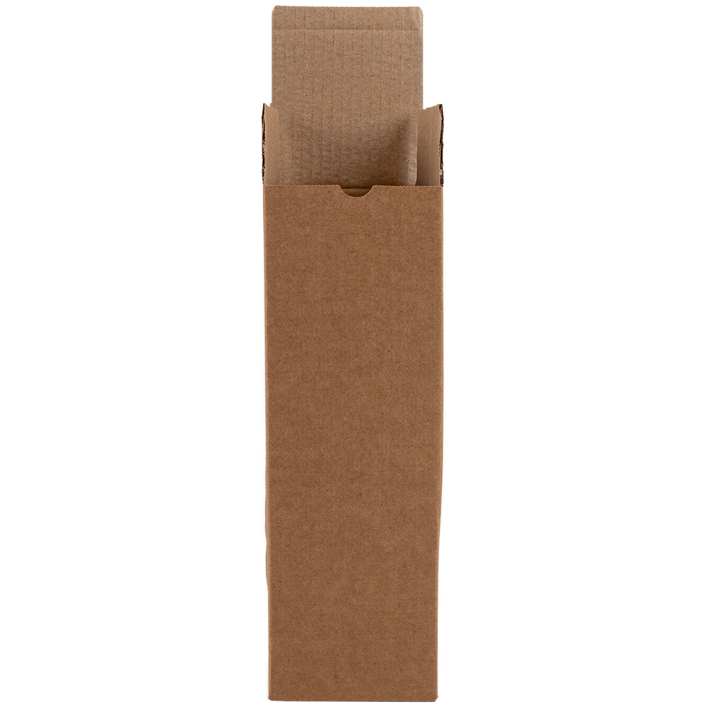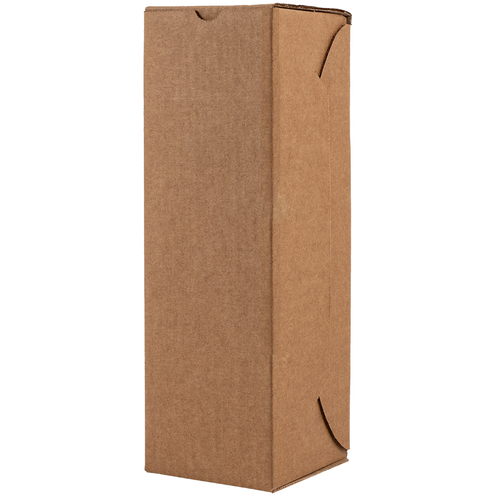 Коробка для бутылки №95, бурая, длиной 100 мм, шириной 100 мм и высотой 310 мм. Изготовлена из трёхслойного картона Т-24 В. Полезный объём — 3.1 л.