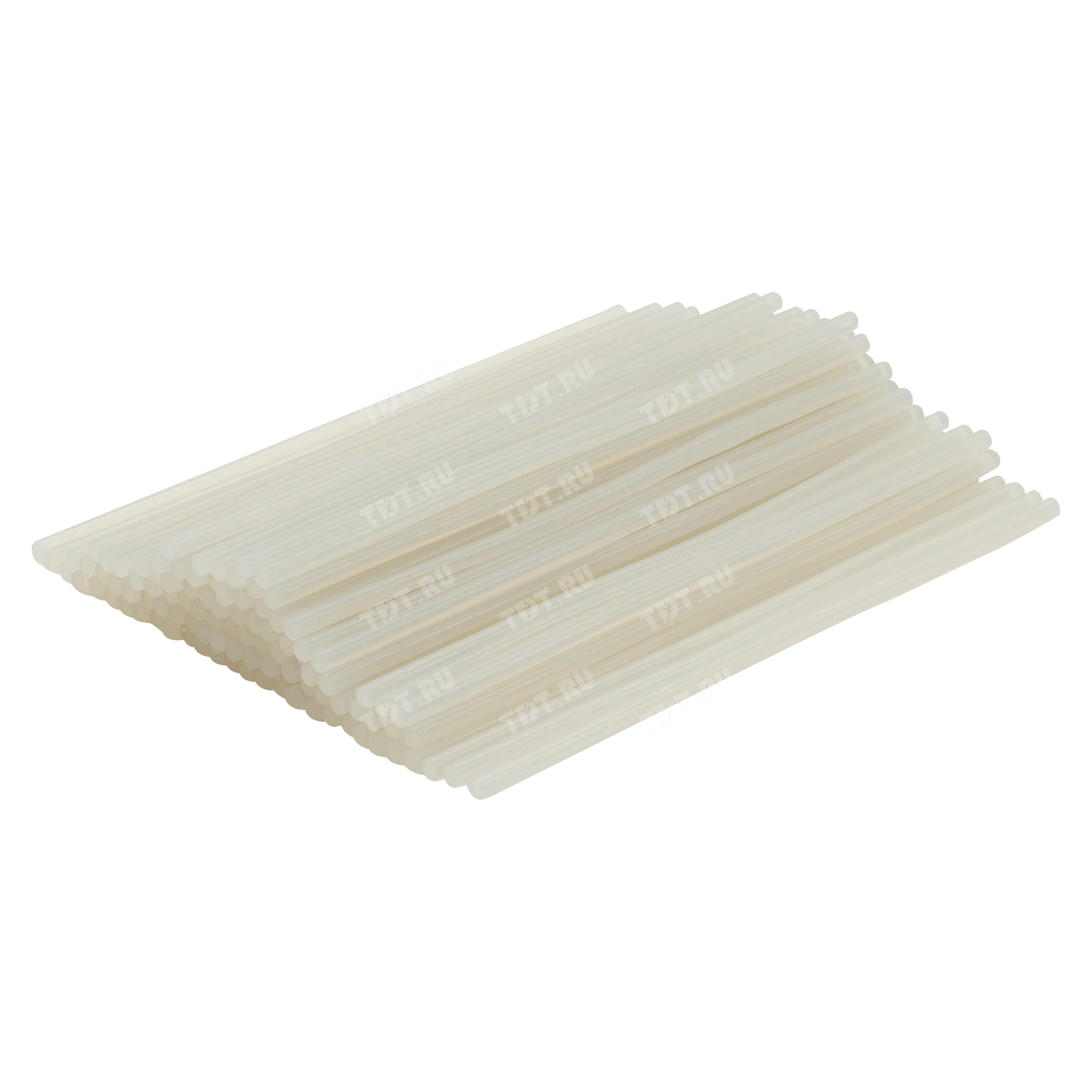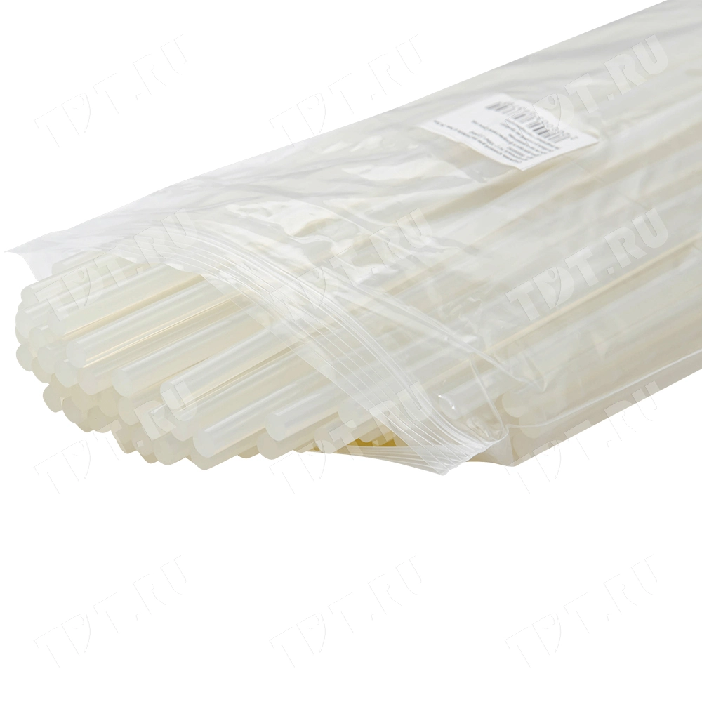 Длинные стержни для клеевых пистолетов горячего плавления, прозрачного цвета, длиной 300 мм, диаметром 7 мм, весом 1 кг, в упаковке по ≈78 штук. Производятся в России.