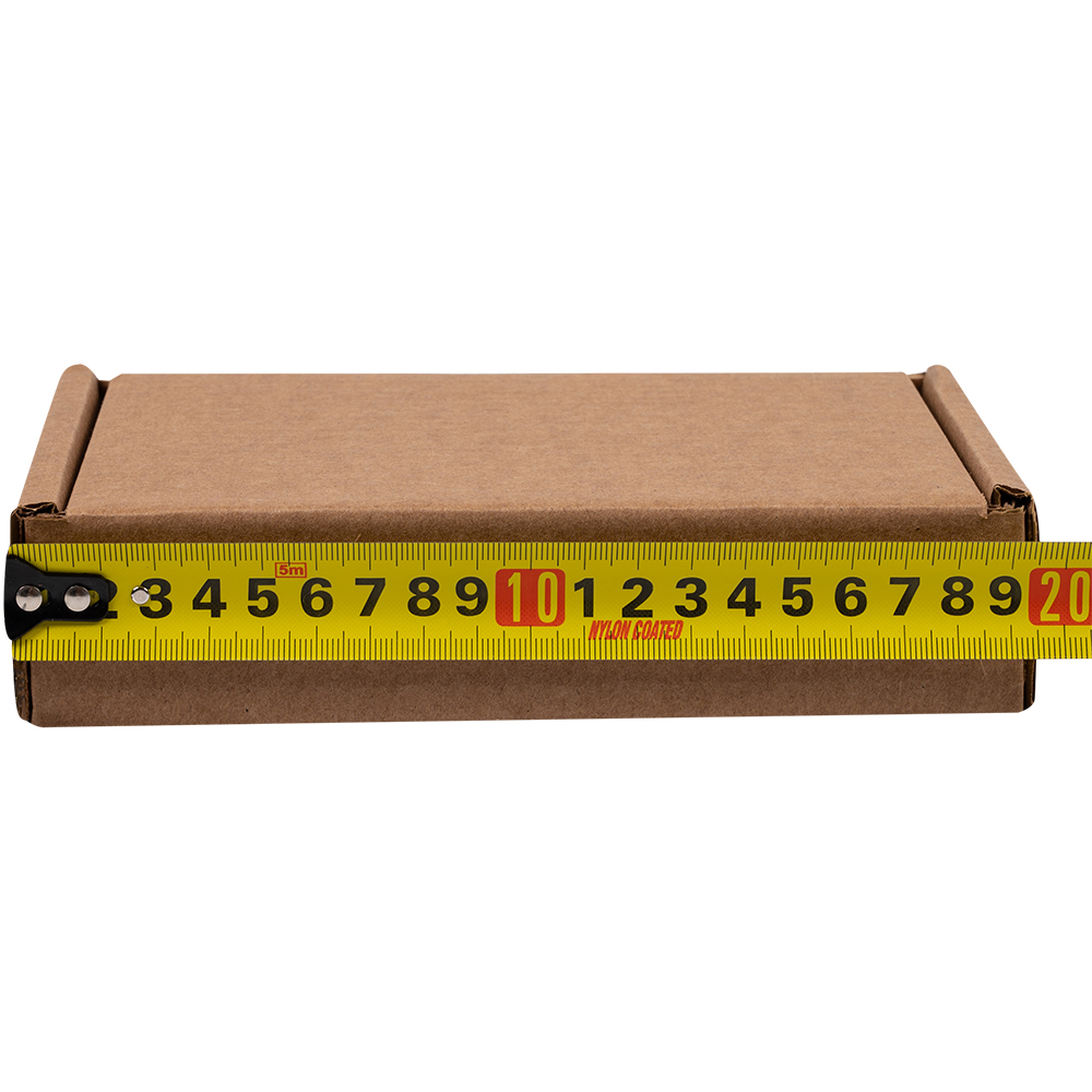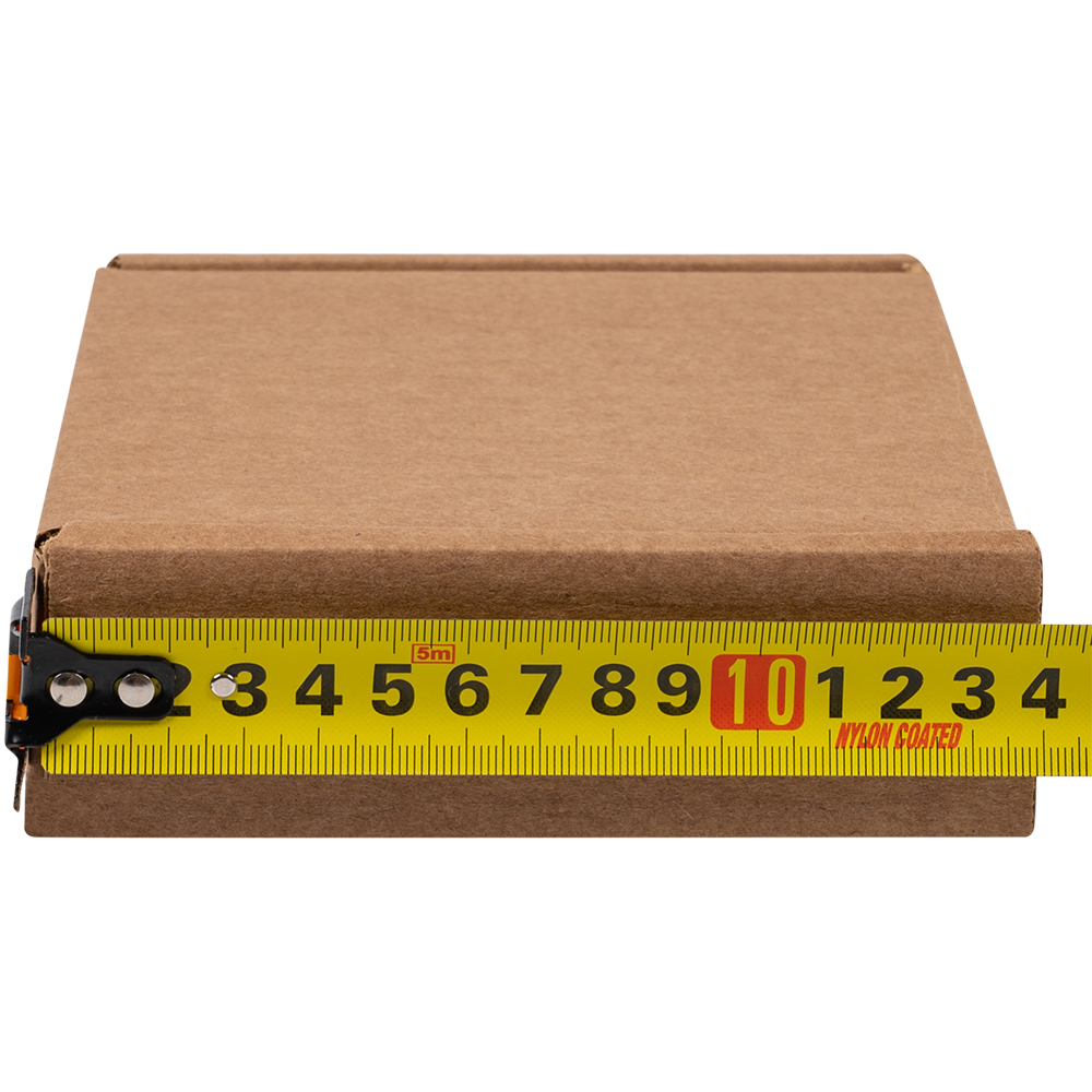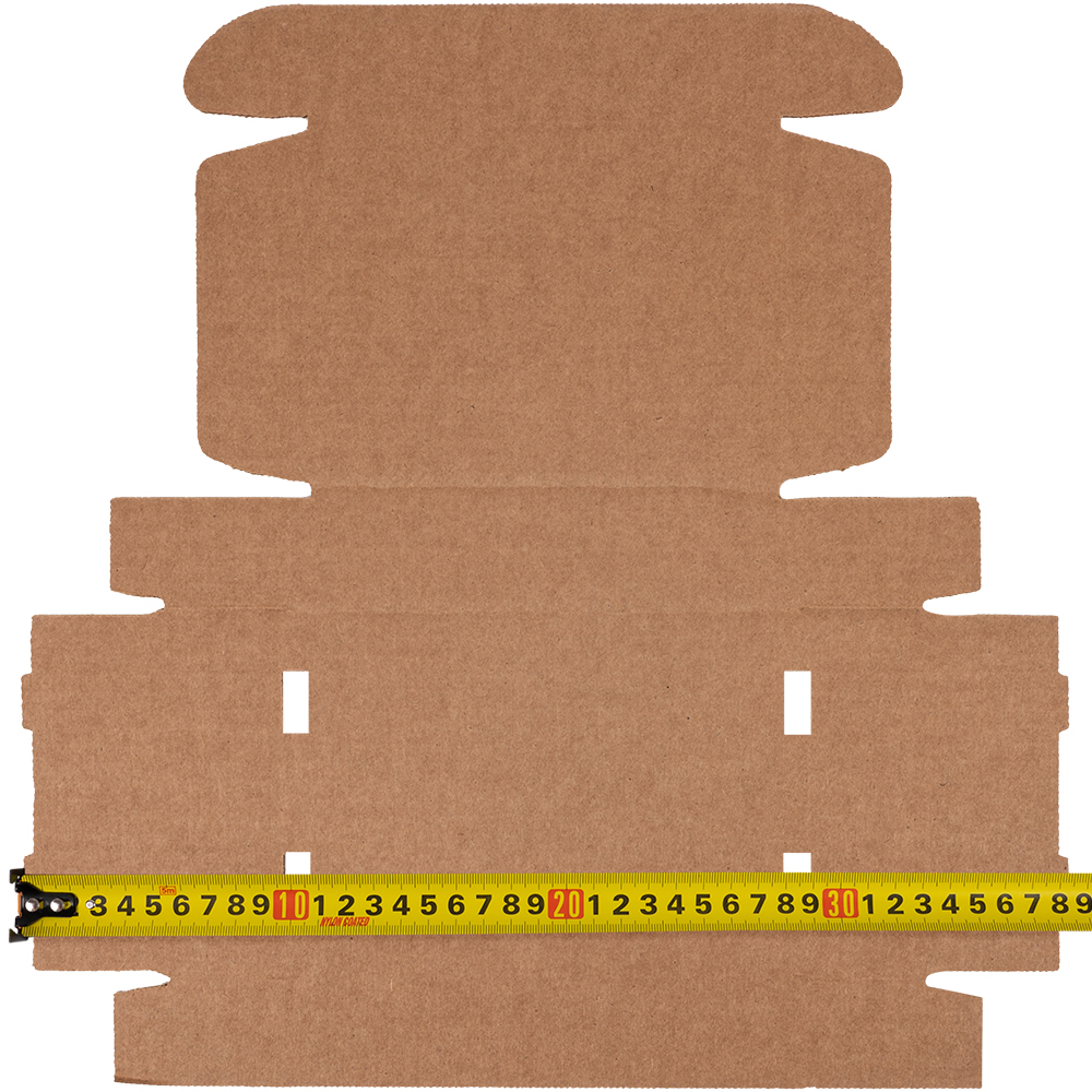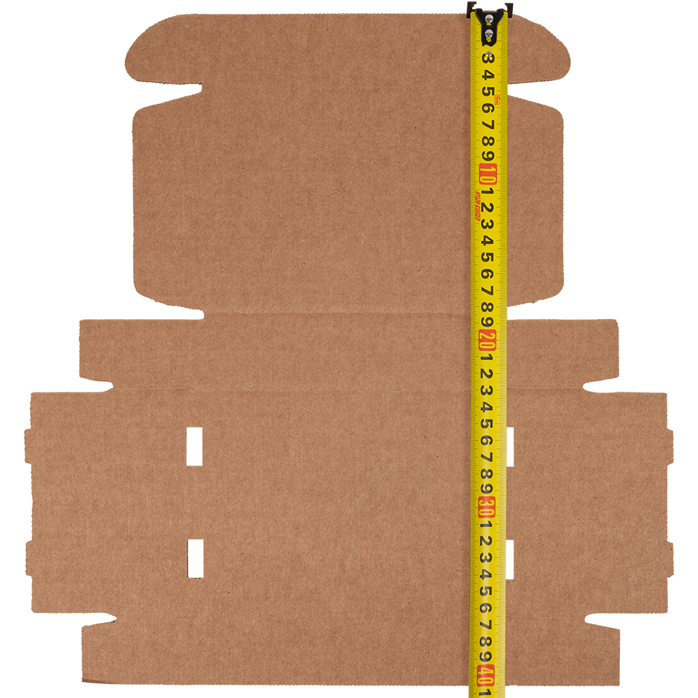 Короб №64/1 бурого цвета, длиной 170 мм, шириной 130 мм и высотой 40 мм. Изготовлен из гофрокартона Т-23 В (целлюлоза). Полезный объём — 0.9 л.