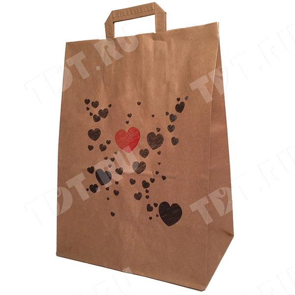 Крафт пакет с плоской ручкой «Сердечки», 80 г/м², 32*18*43 см