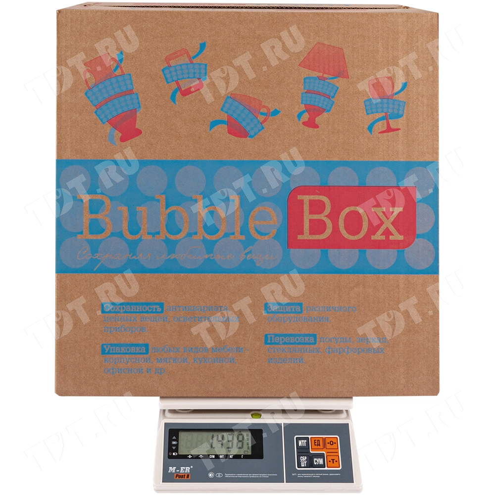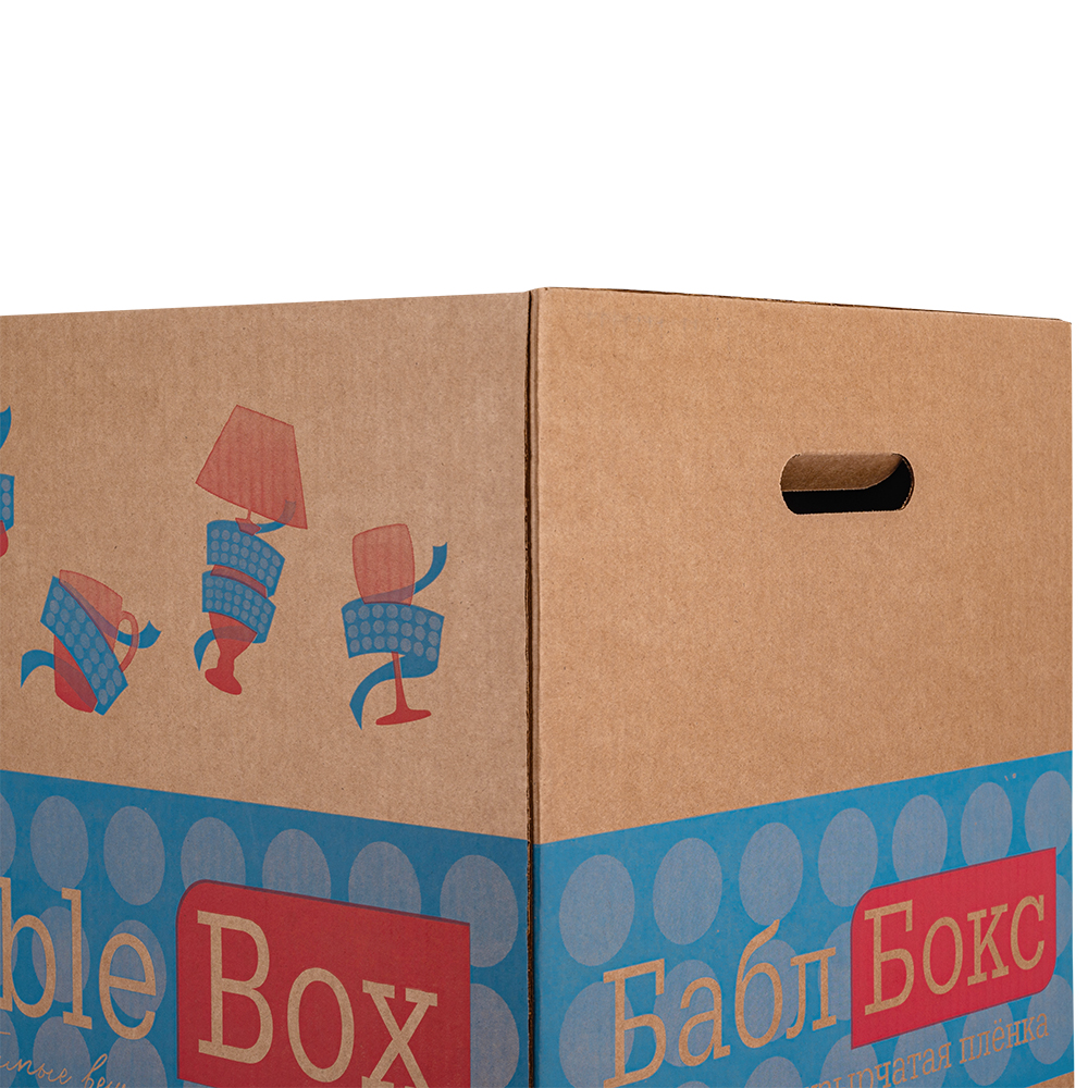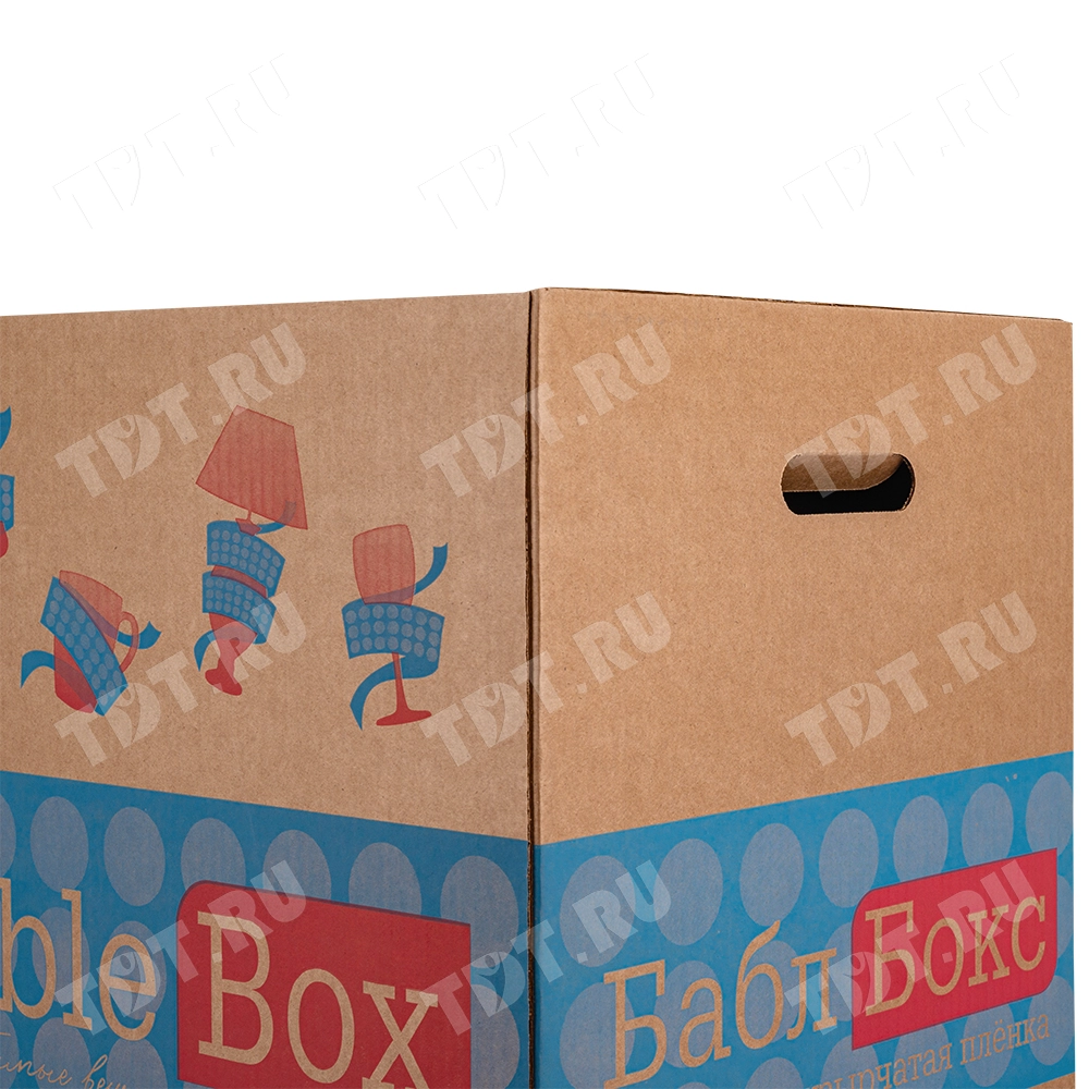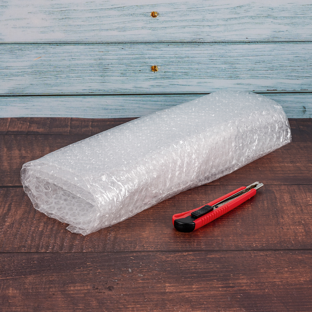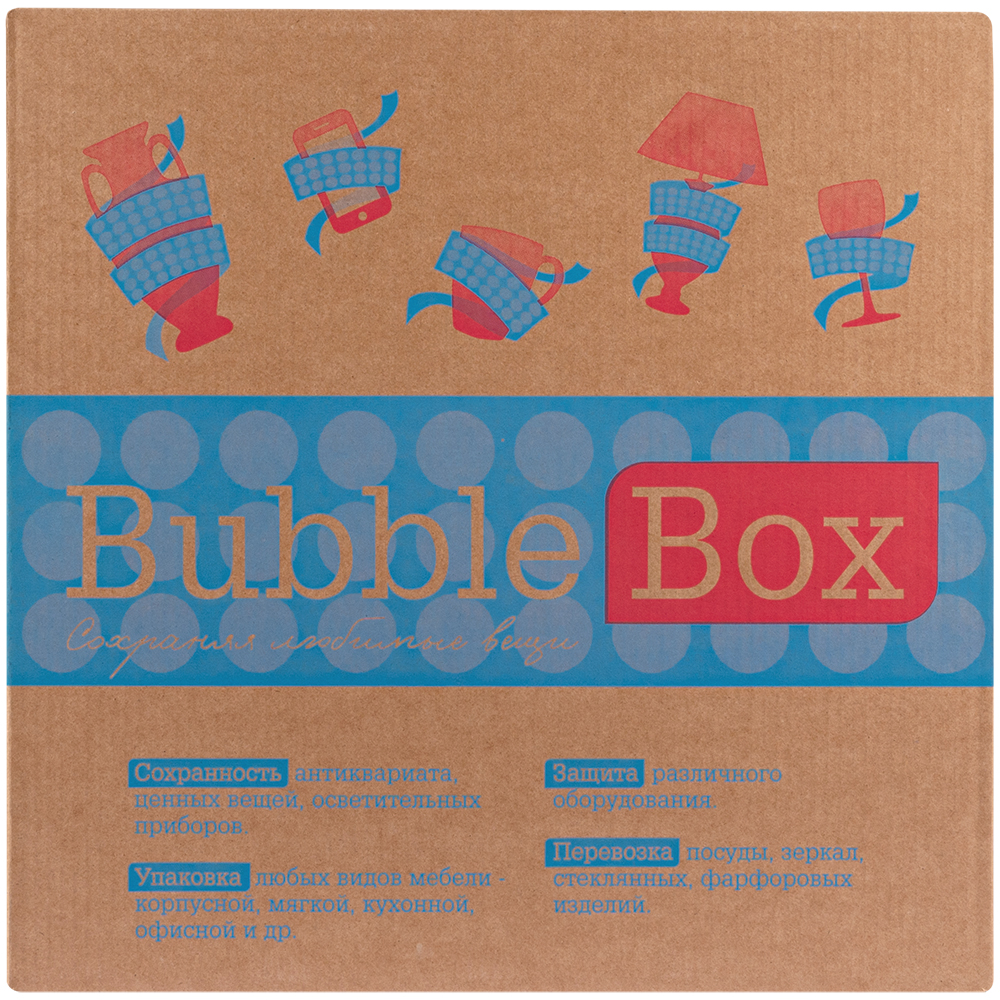 Прозрачная трехслойная воздушно-пузырчатая пленка в коробке «БаблБокс», намоткой 50 м, шириной рулона 0.3 м, диаметром пузырька 10 мм, плотностью 60 г/м². Изготовлена из полиэтилена. Производится в России.