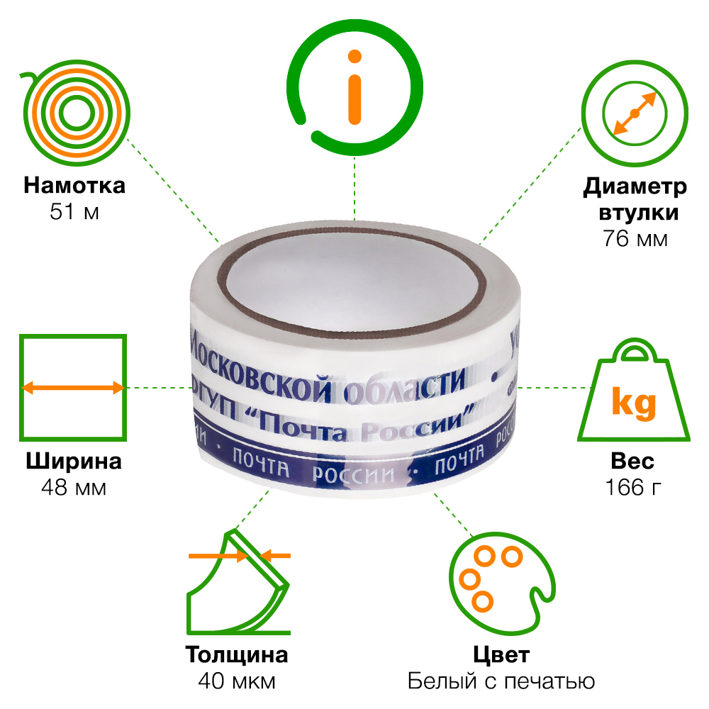 Область применения:Используется для упаковки и отправки посылок и бандеролей с отправкой из Москвы по России. Надпись четкая и видна издалека, не стирается, намотки хватает на много упаковок.
