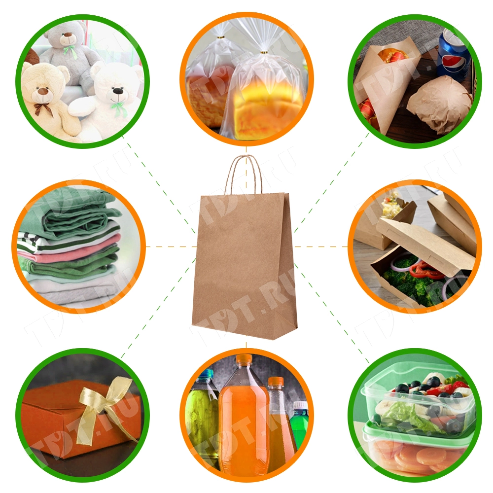 Пакеты с крученой ручкой используются для упаковки, переноски, хранения продуктов питания и бытовых товаров. Они незаменимы в магазинах, пекарнях, кафе, ресторанах и на фудкортах.