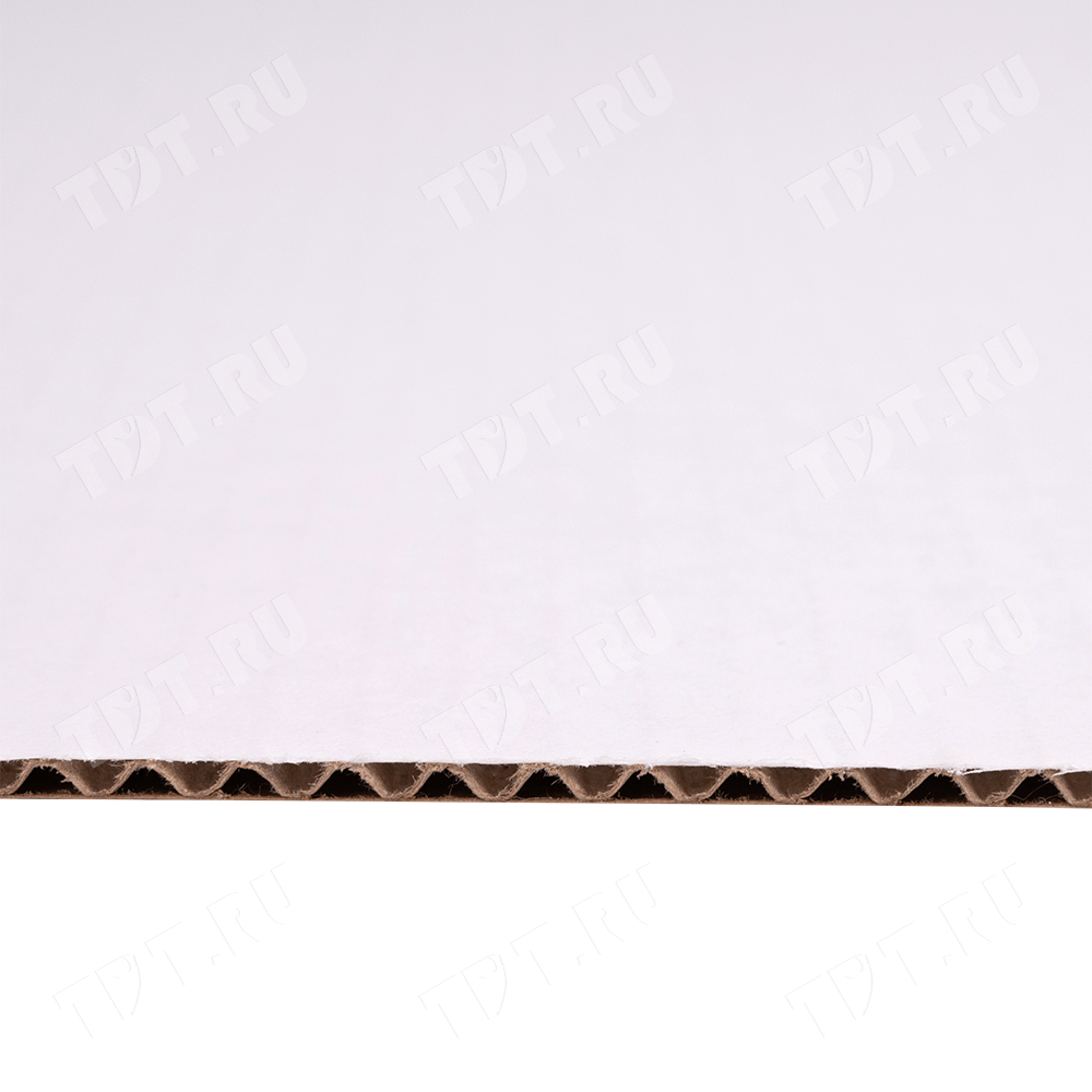 Трехслойный лист гофрокартона бело-бурого цвета, марки Т-23 В, длиной 2060 мм, шириной 1200 мм, толщиной 2.5-3.2 мм, площадью 2.472 м², направление волны вдоль стороны 1200 мм. Производится в России.