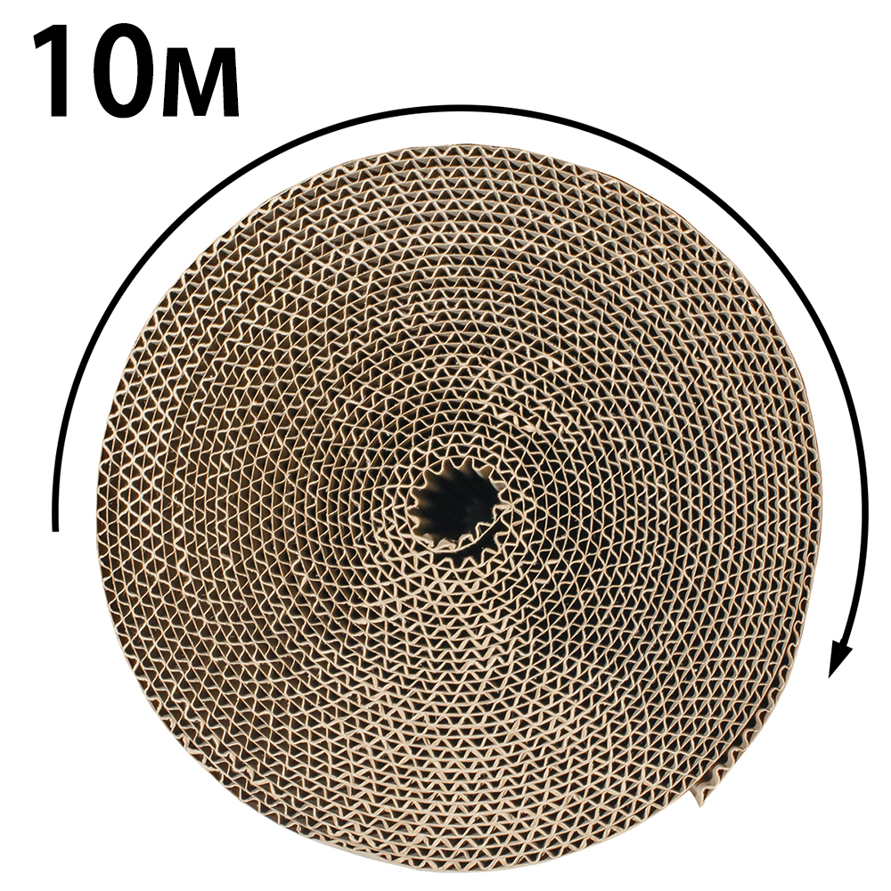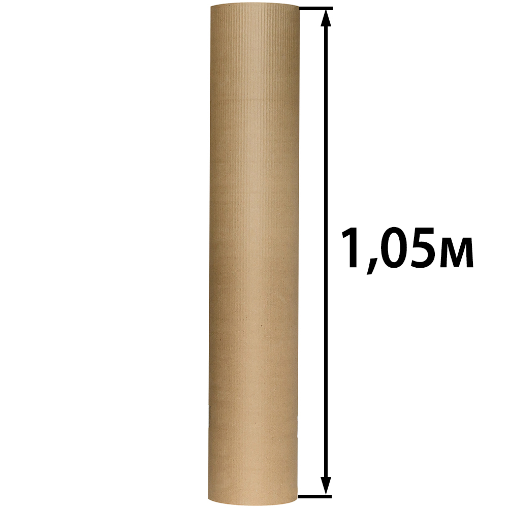 Рулонный гофрокартон бурого цвета, намоткой 10 м, шириной 1.05 м, толщиной 2.8-3.0 мм, площадью 10.5 м². Производится в России.